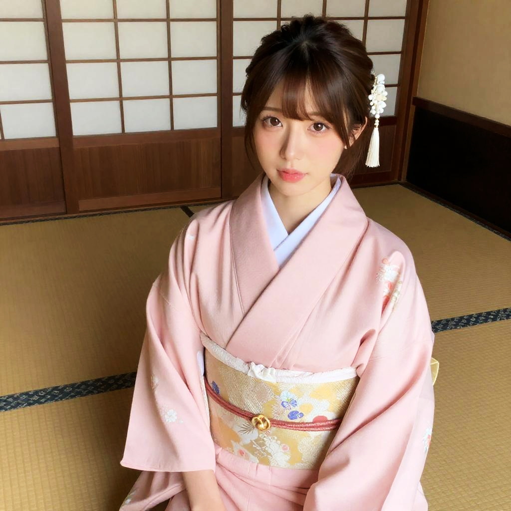 Realistic Japanese Girl in Pink Kimono