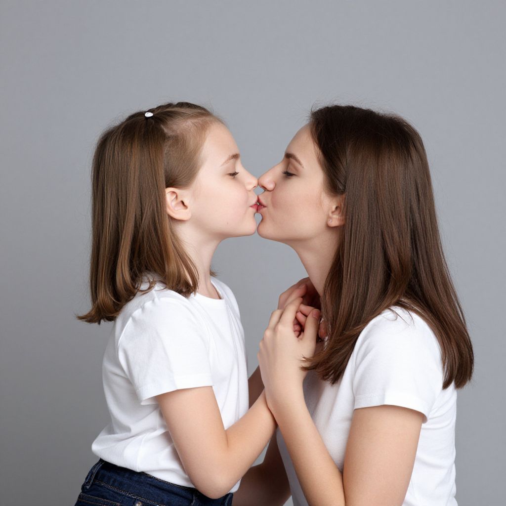 Studio, person, people, together, caucasian, love, family, woman, care, cheerful, smiling, affection, heart, kissing, white...
