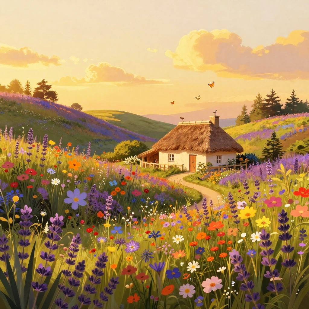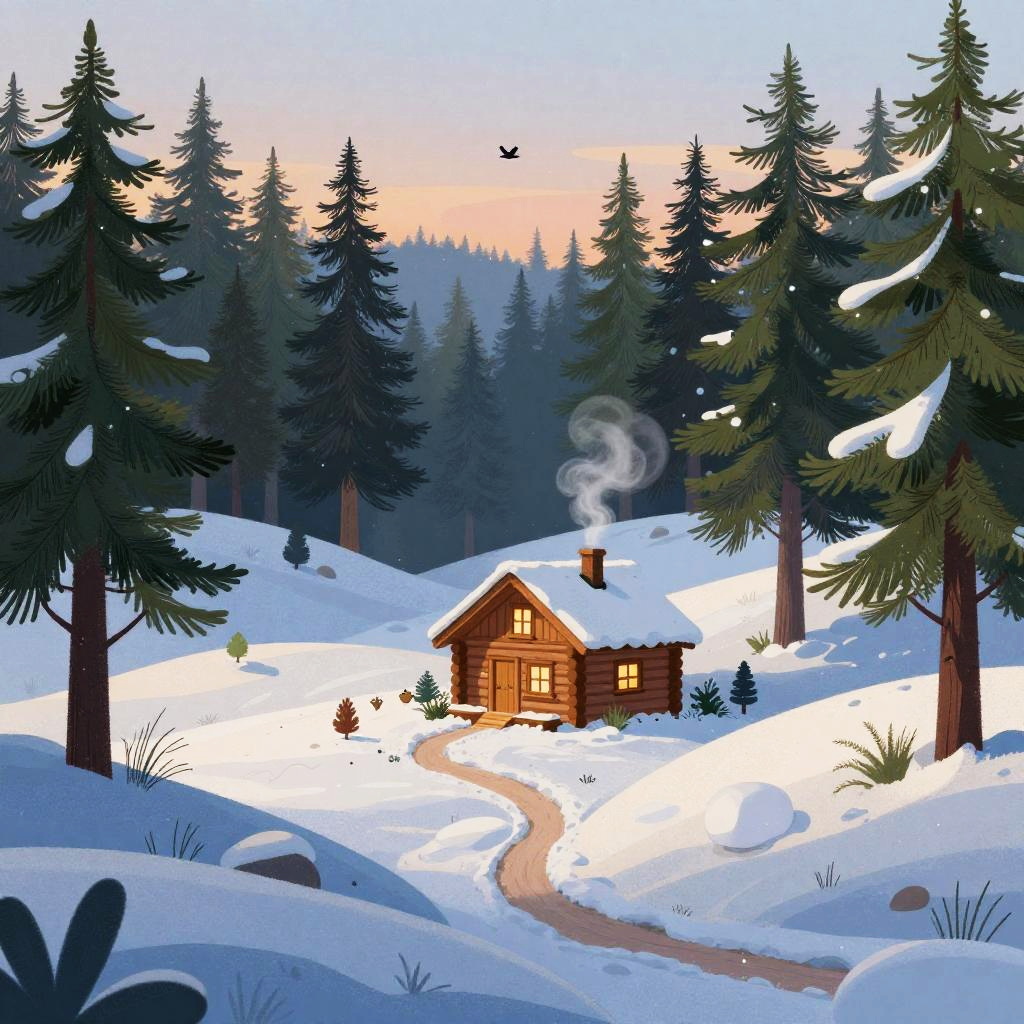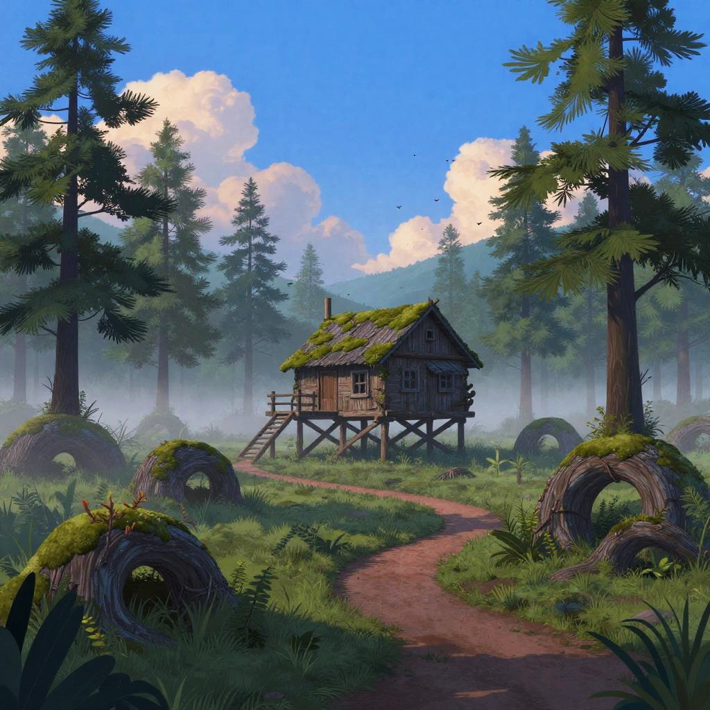 Whimsical Autumn Forest Cottage Scene