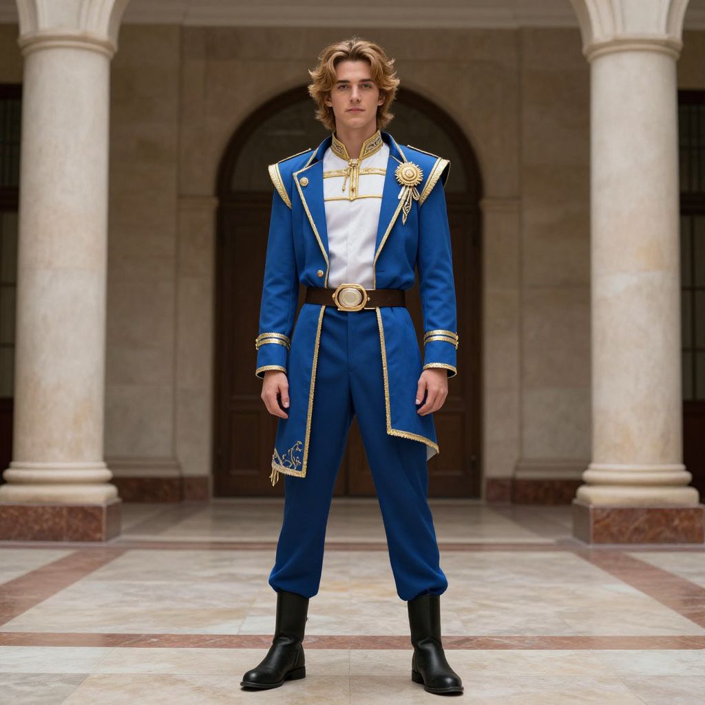 Gawain in Blue and Gold Costume