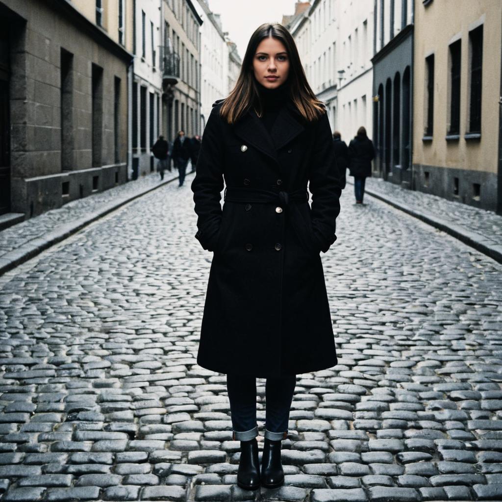 Chic Woman in Grey Coat