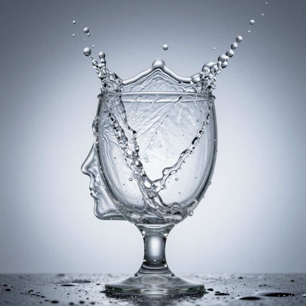 Spilling water from a glass creating the shape of a human head, ray tracing, realistic water sharp focus, long shot, 8 k resolution, cinematic, amazing water art