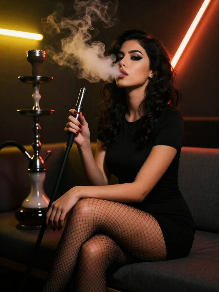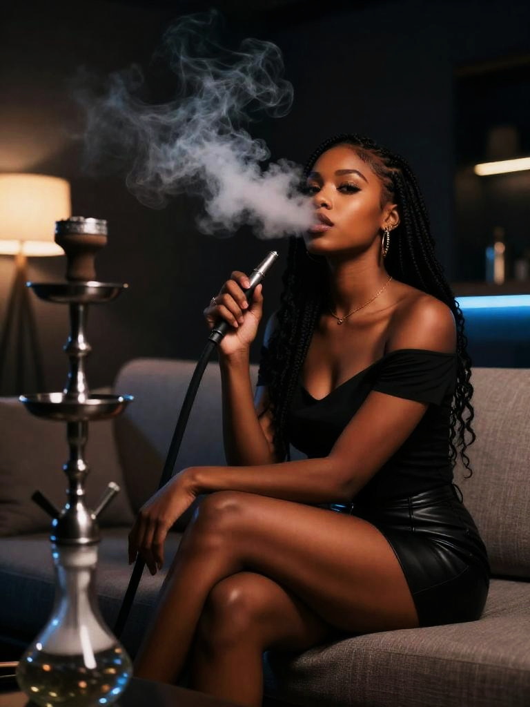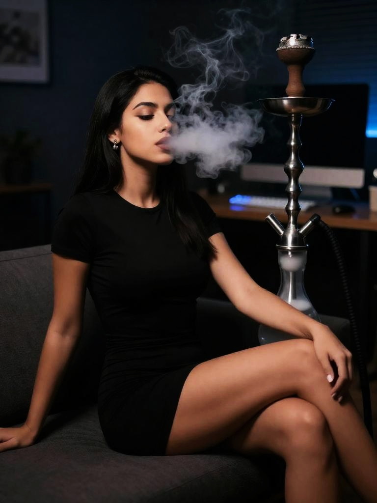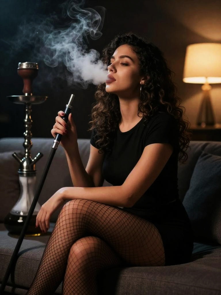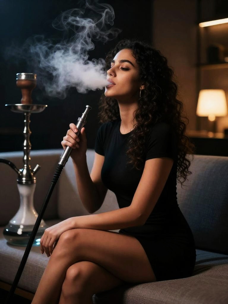 Woman Smoking Shisha Indoors
