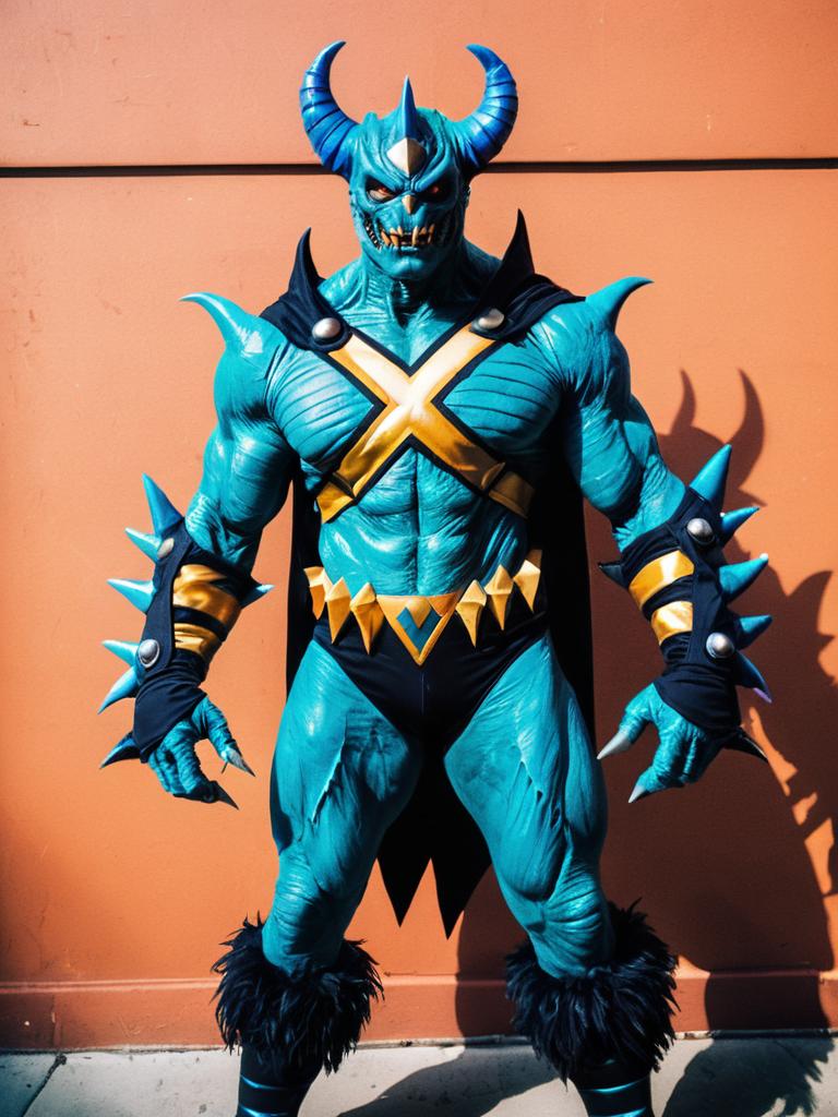 Man cosplay. Wearing Monster X costume. Realistic photo. Dressed as Monster X --sref 1392