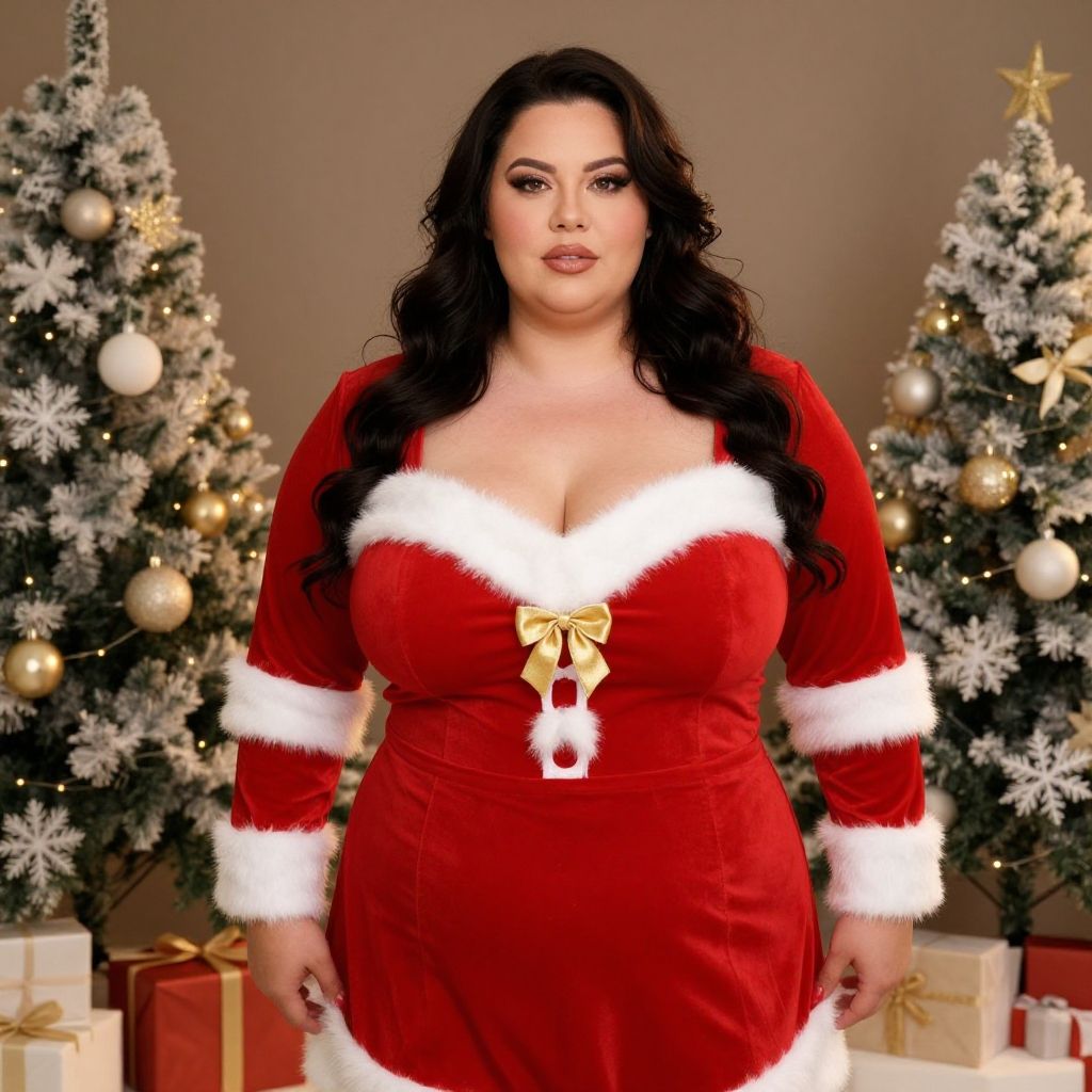 Masterpiece, Best quality, (Photorealistic:1.4), Beautiful Woman, Large breasts, Large Scale girl standing, Christmas clothes, Christmas
