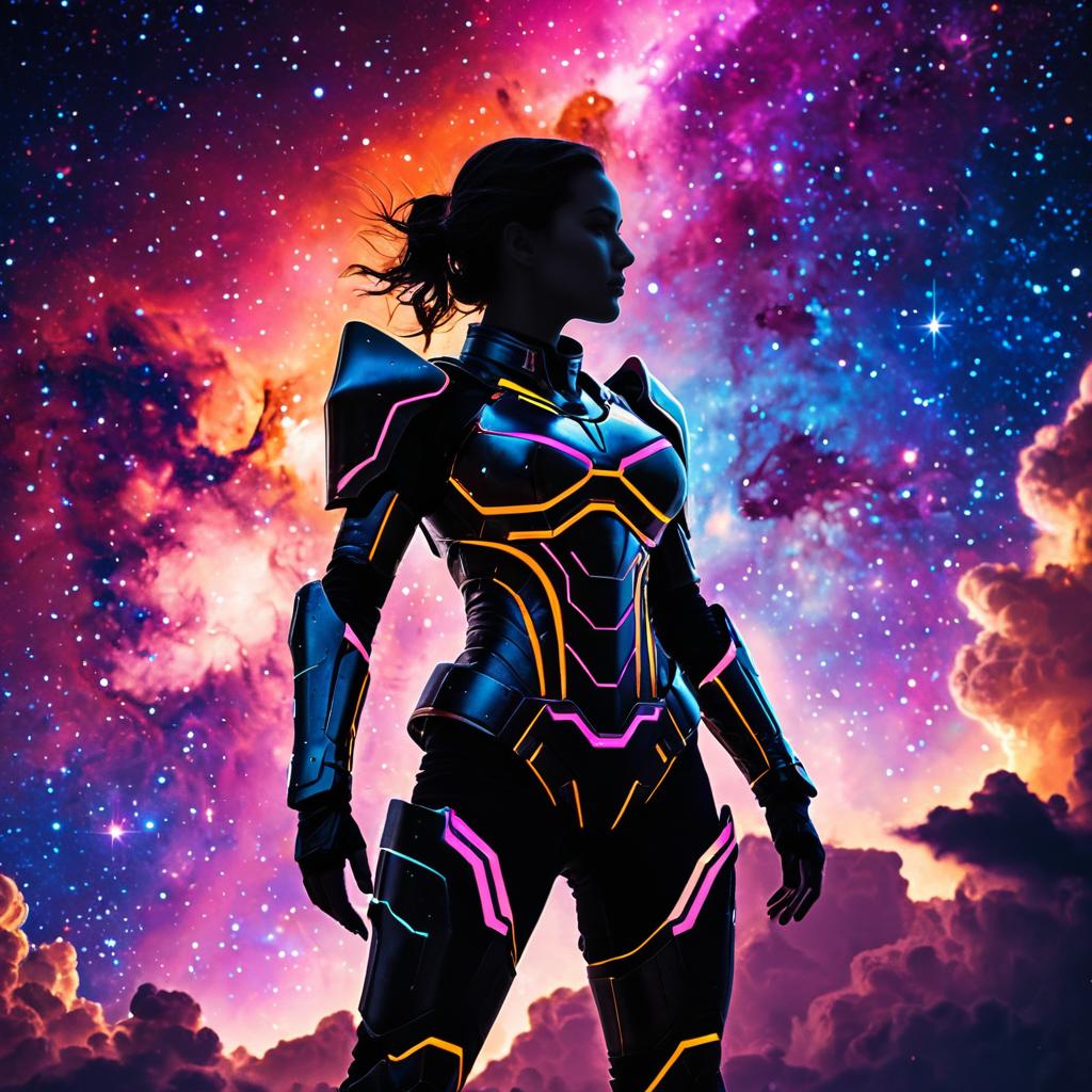 Futuristic Female Warrior in Cosmic Armor