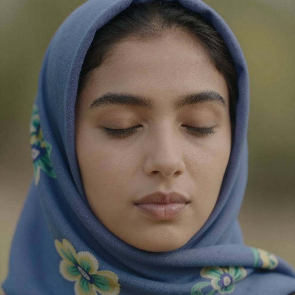 Woman in Brown Headscarf Leaning on Table