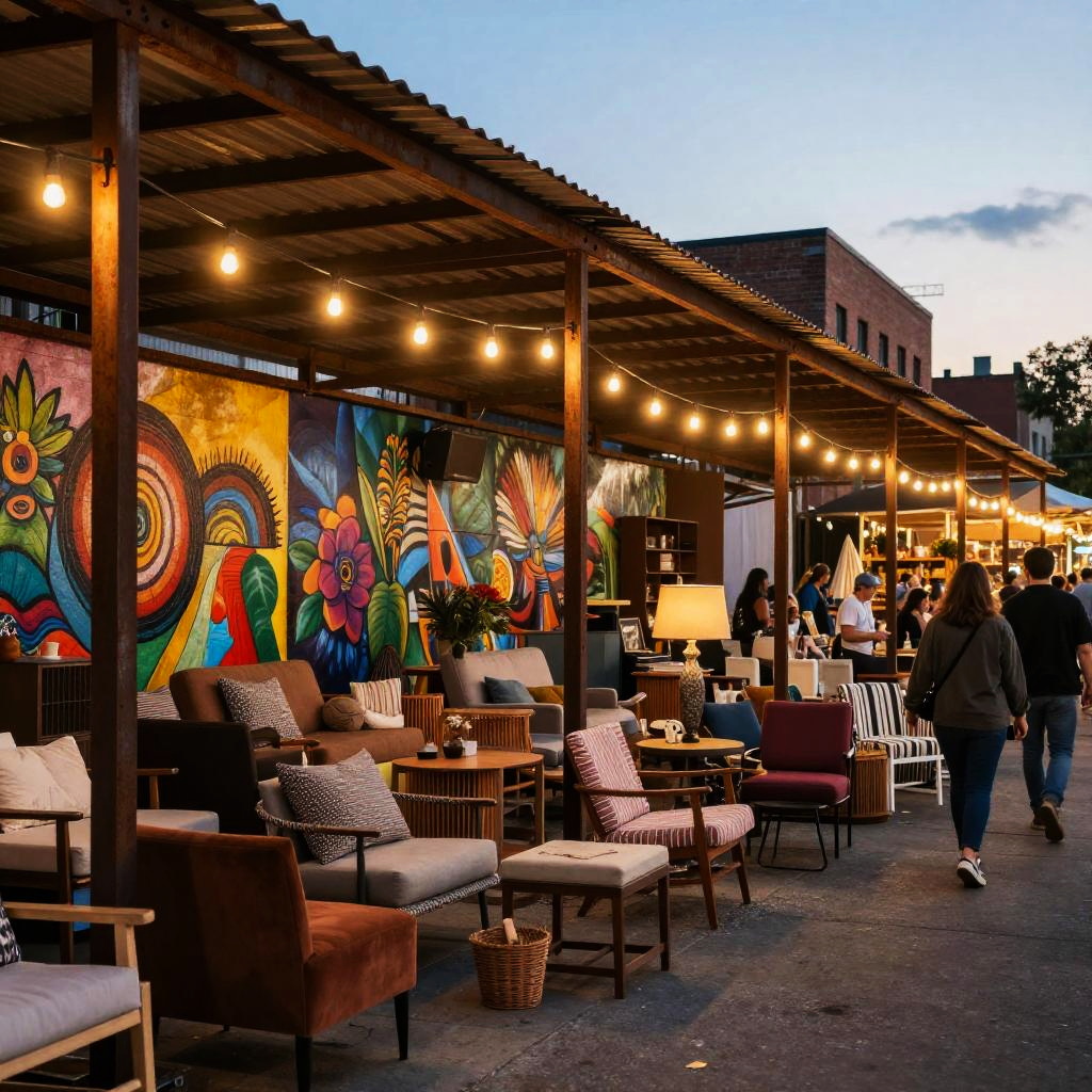 Industrial Eclectic Café Interior Scene