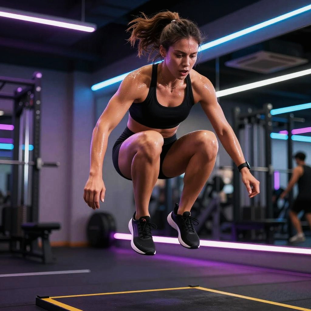 Zara, a female triathlete training in flooded underground parking garage with dim fluorescent lights, focused on button-up swim strokes, jaunts on stationary bike, power runs, sweat dripping, gritty atmosphere, motivational slogans on battered walls, chalk dust hanging in the air, puddles on concrete, shafts of light through a leaky roof, soft haze and dynamic motion blur, high contrast and deep shadows, hyper-detailed musculature, determined stare, cinematic lighting, bold composition, low-angle hero shot, echoing clanks, relentless energy, subtle film grain, moody blue-orange color grade, epic athletic intensity