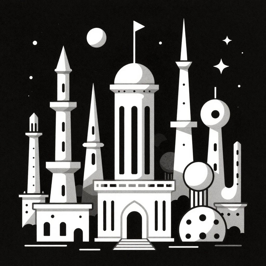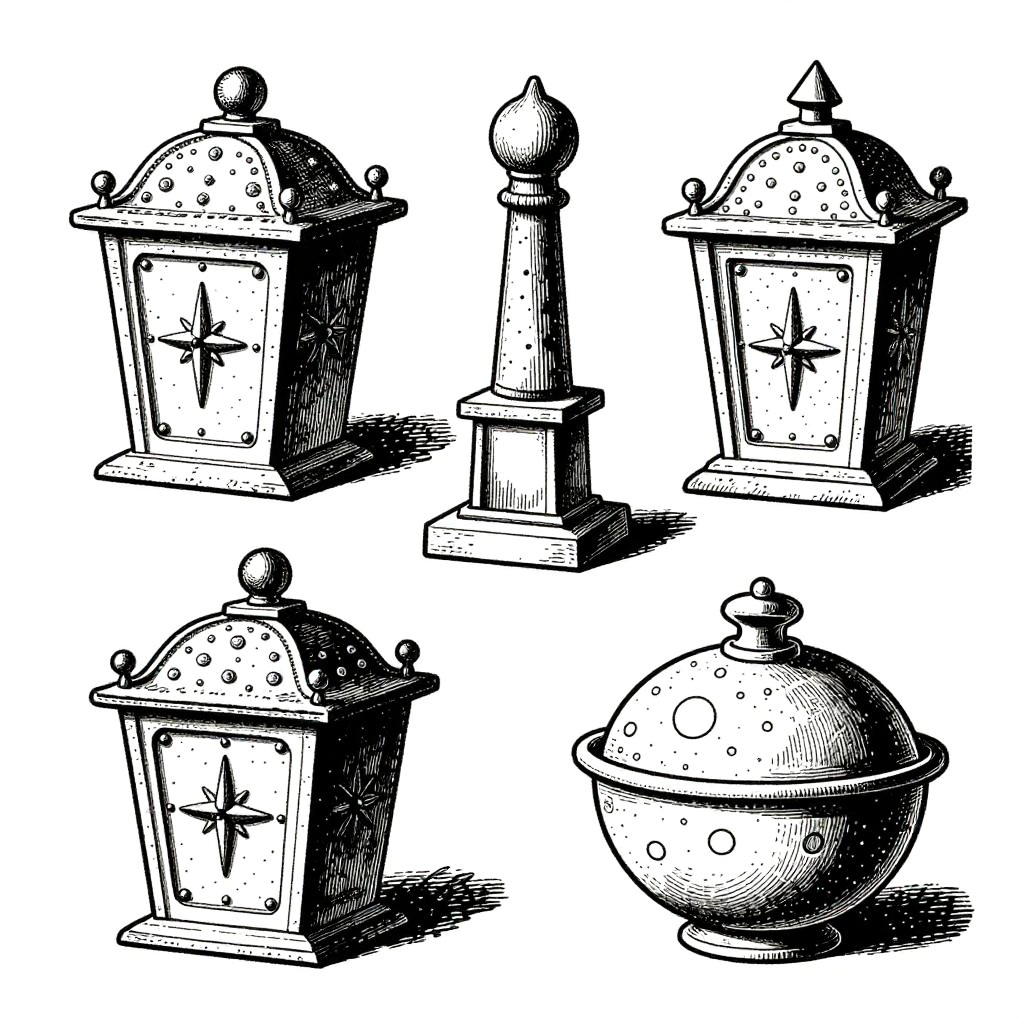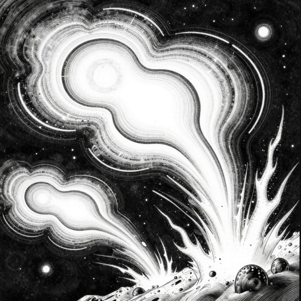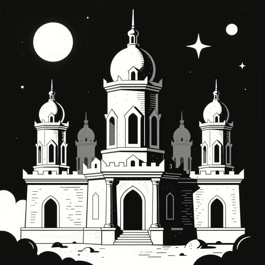 A graphic design illustration of interdimensional abyssal gateways, rendered in black and white in the style of Edward Gorey, Aubrey Beardsley, Lee Brown Coye. Featuring bold, simple, and comprehensible forms, it captures a melancholic, mysterious, and cosmic horror theme.