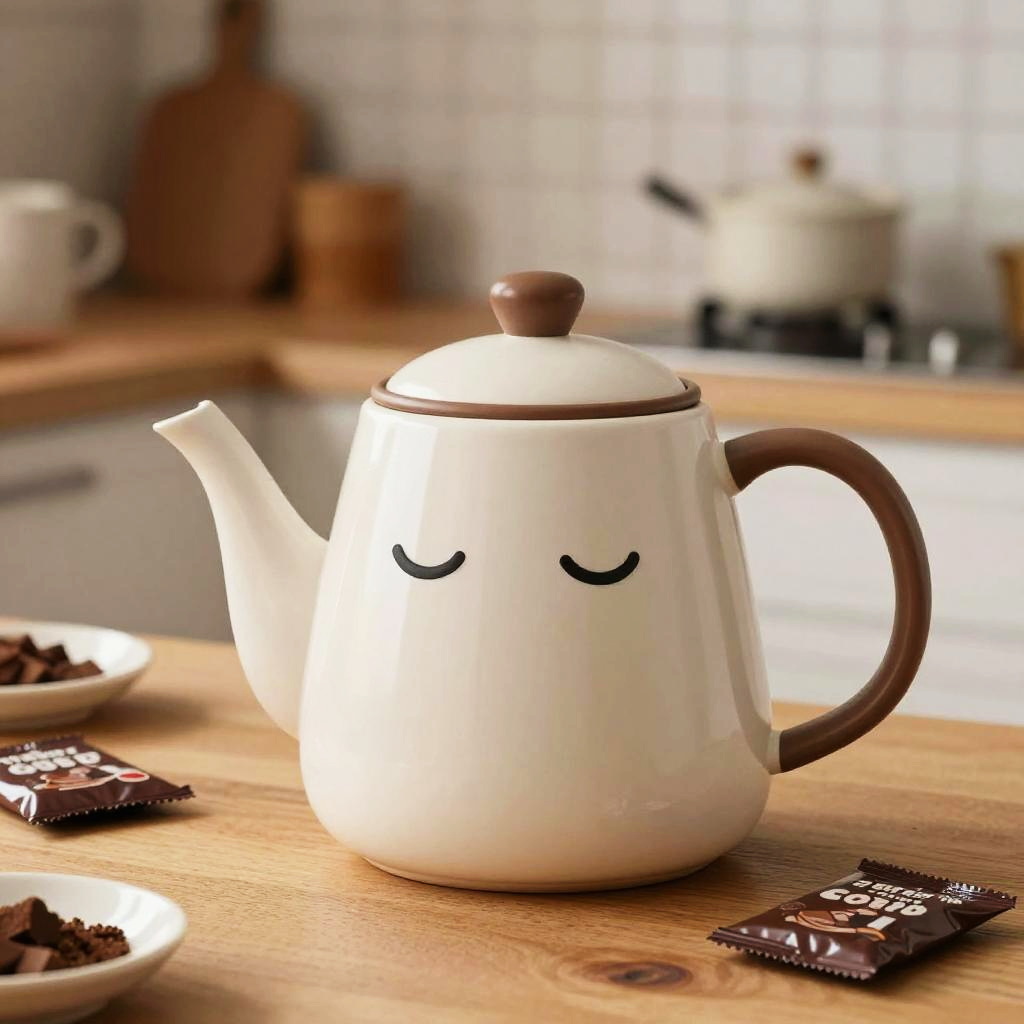 Anthropomorphic blender with a excited smile, designed with realistic details and texture, in a modern countertop. Surrounded by related items like fruit slices, with warm and inviting lighting
