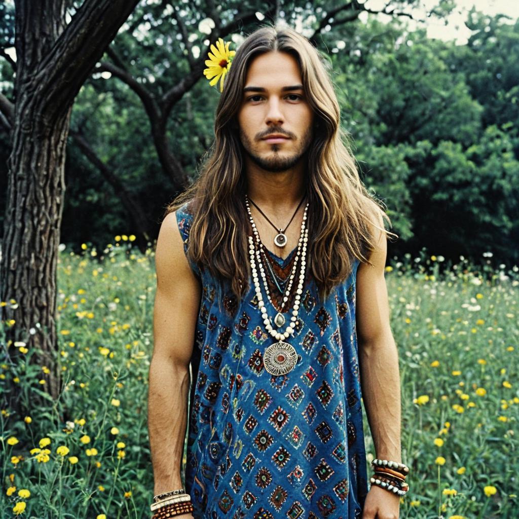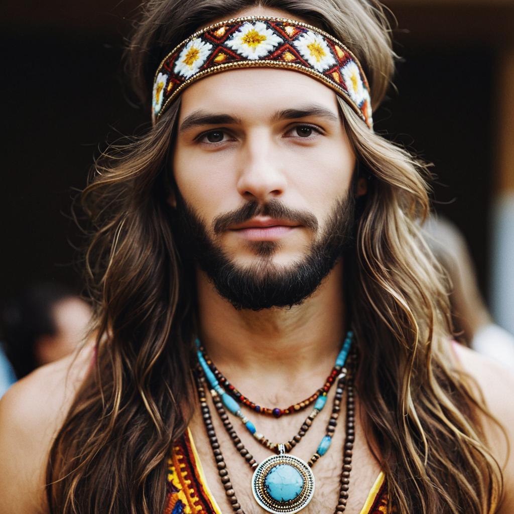 Realistic Solo Portrait of a Hippy Man