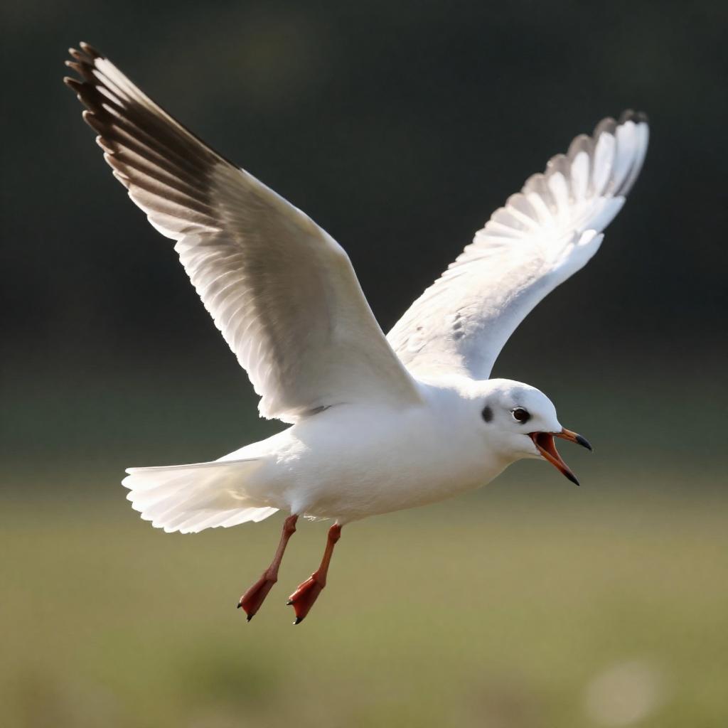 CGI bird with large green eyes, brown and white feathers, perched on the tip of a red airplane wing. Bright blue sky background. Bird looks surprised or curious. Clear daytime setting.