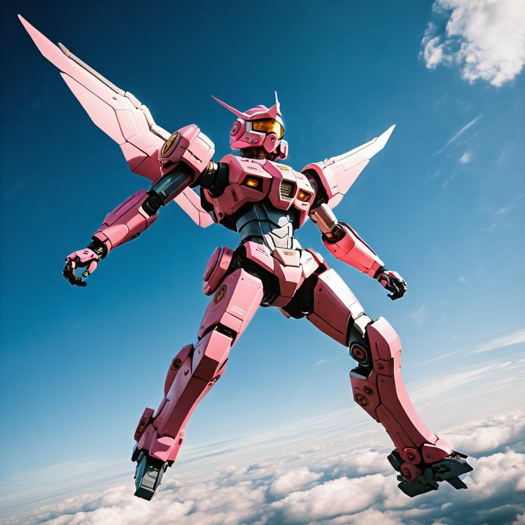 Pink Mecha Girl Flying Dramatic