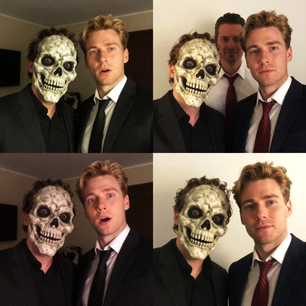Blonde Man and Skeleton Mask Selfie Collage