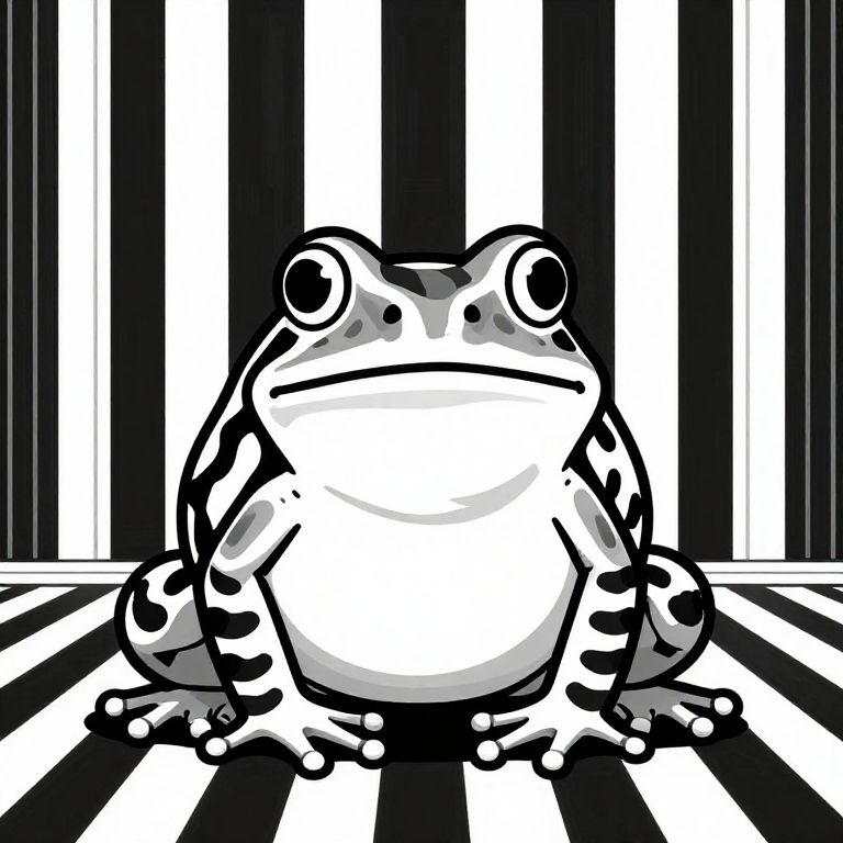 Monochrome, Closeup Portrait of a Striped armored green striped frog-girl infront a Striped wallpaper embedded in a grignani inspired monochrome with Low Key colorful lines, an Image completely made of bold thick lines, perfectly aligned, a 3d Illusion resembling wall Made of lines embedded in the whole Art piece Like its one in black and white deep lined and striped space