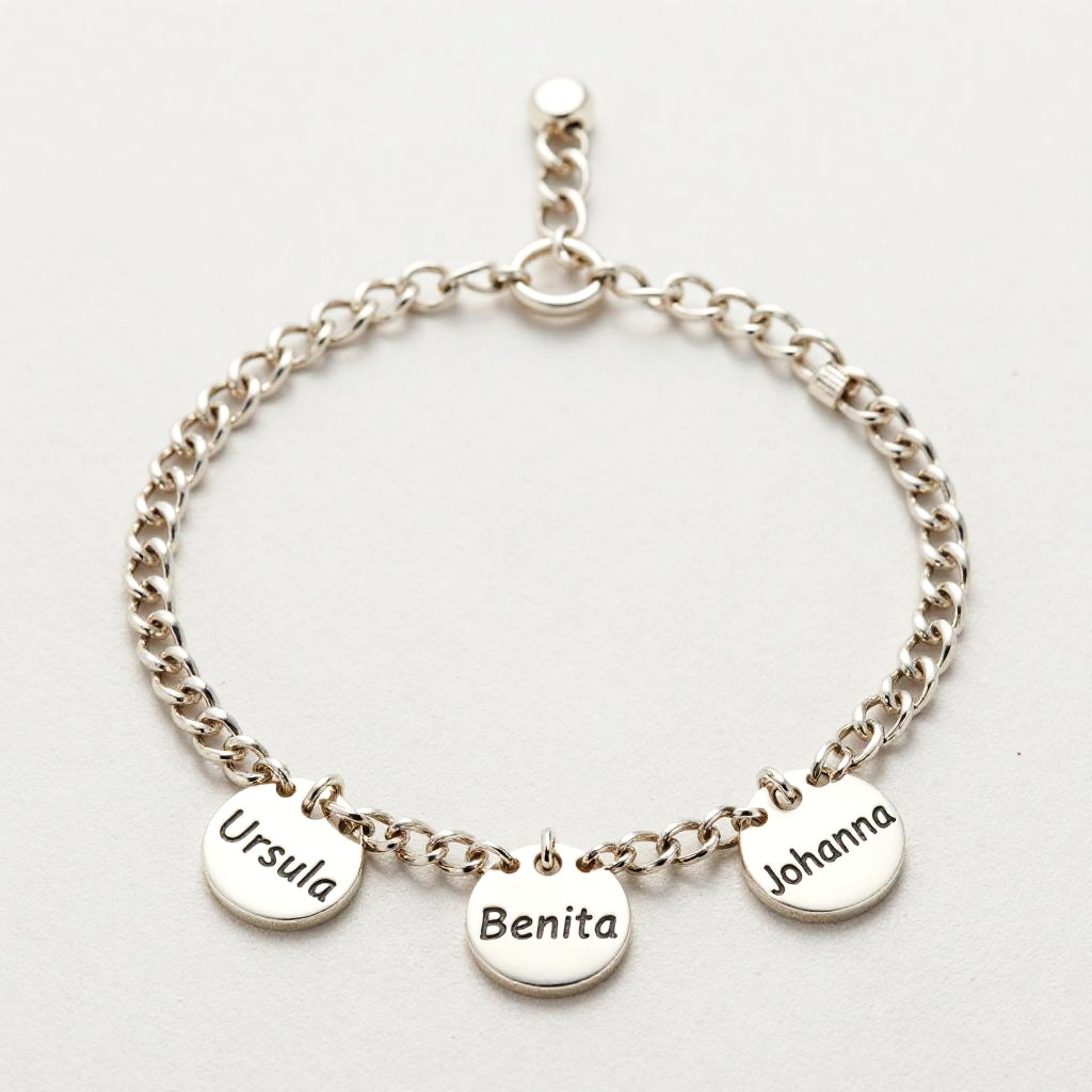 Elegant Silver Chain Bracelet with Name Tags