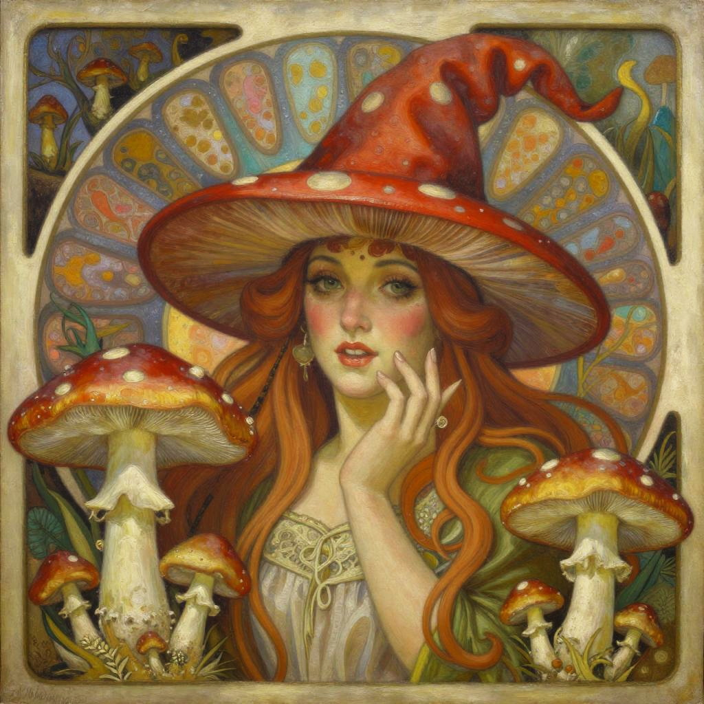Witch with Red Mushroom Hat