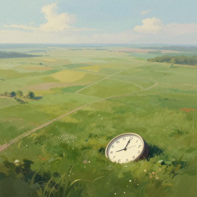 Imagine an impressionistic digital artwork, blending surreal elements with a serene meadow landscape viewed from an aerial perspective akin to soaring above the scene. The delicate brushstrokes and soft color transitions evoke a dreamlike atmosphere, emphasizing the unique vantage point and thought-provoking juxtaposition of natural tranquility with surrealistic features reminiscent of iconic melting clocks. This composition encourages both wonder and contemplation in the viewer by merging peaceful surroundings with elements that challenge reality's boundaries.