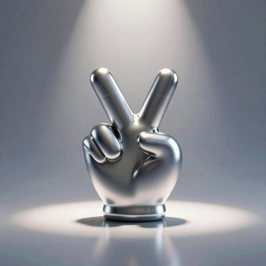 A 3D finger crossed emoji made of polished chrome sitting on a reflective surface with a soft spotlight, minimalistic and modern design, ultra detailed