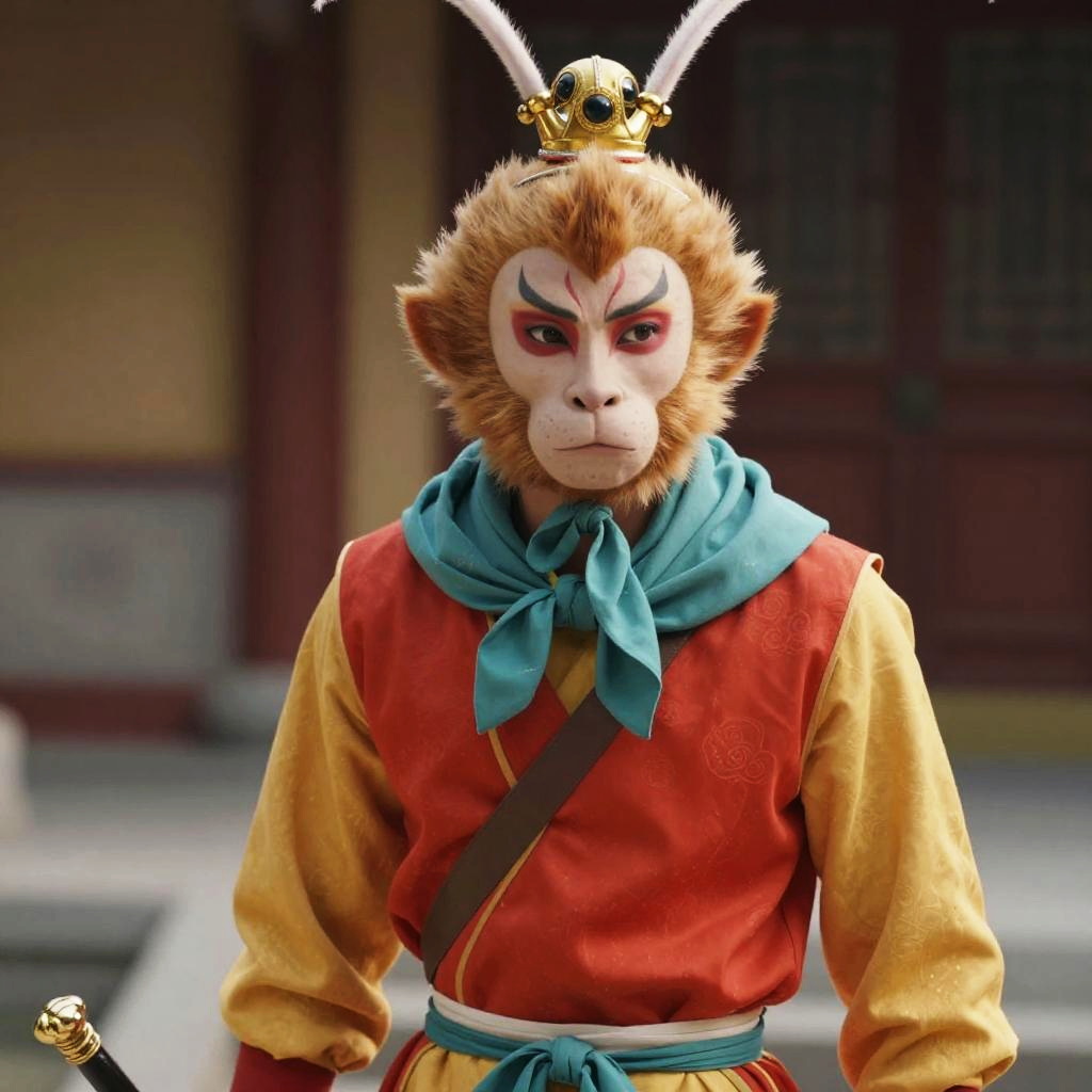 Sun Wukong, image of a man in a red and gold outfit