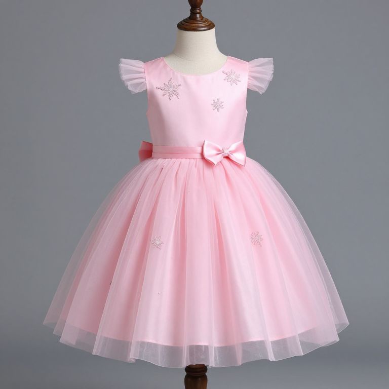 Cute Round Neck Pink Tulle A-line Long Cheap Flower Girl Dresses, FGS0019