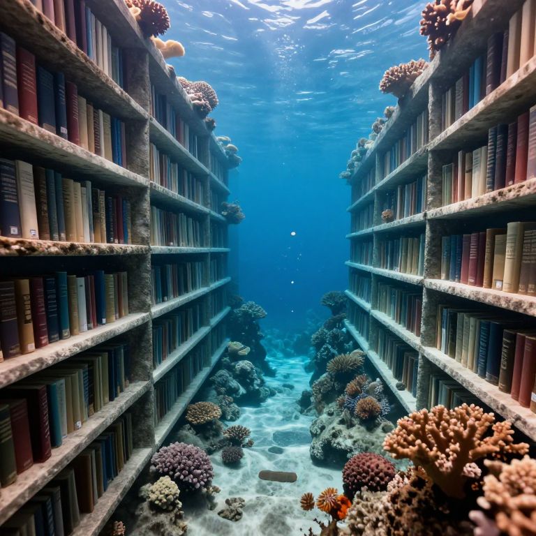 Underwater Library Amid Ocean Depths