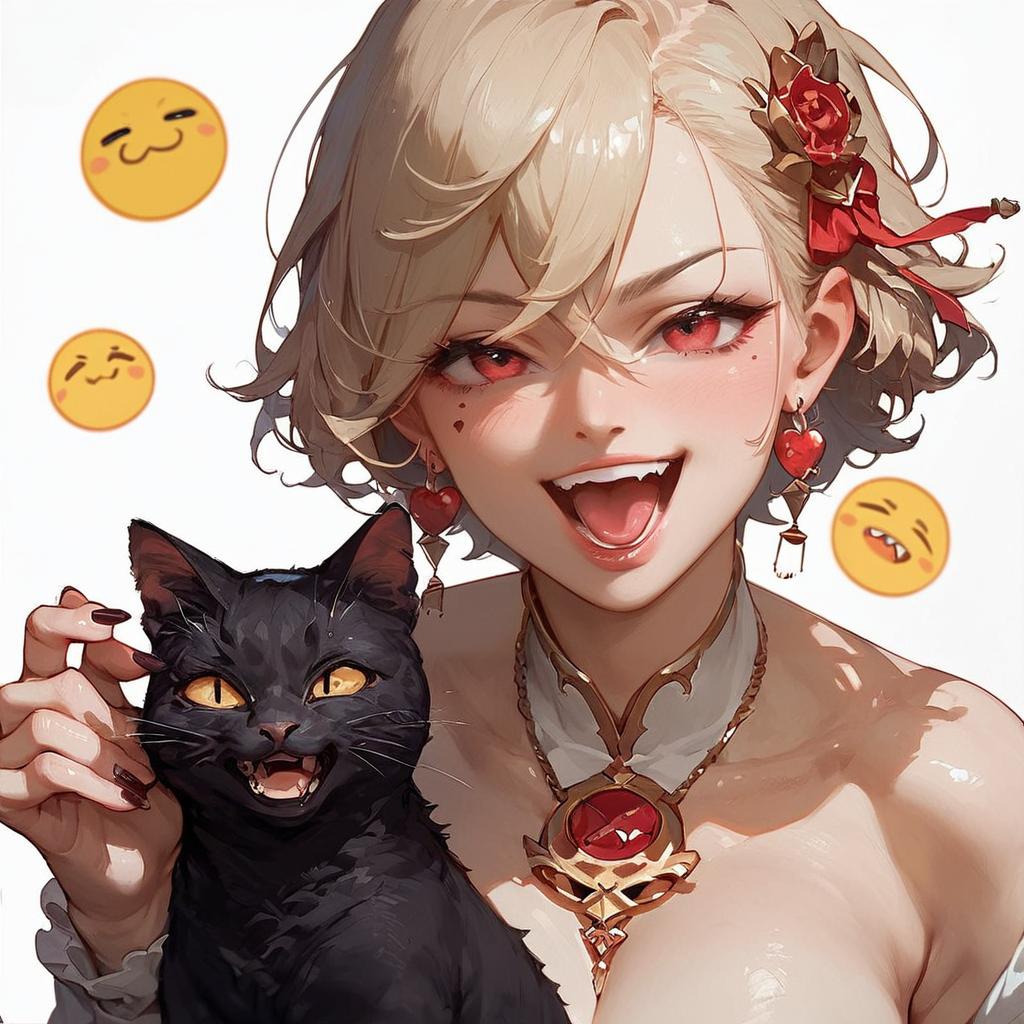 Score_9, score_8_up, score_7_up, source_anime, simple background, white background, animal focus, solo, nekoemoji, cat, evil laugh