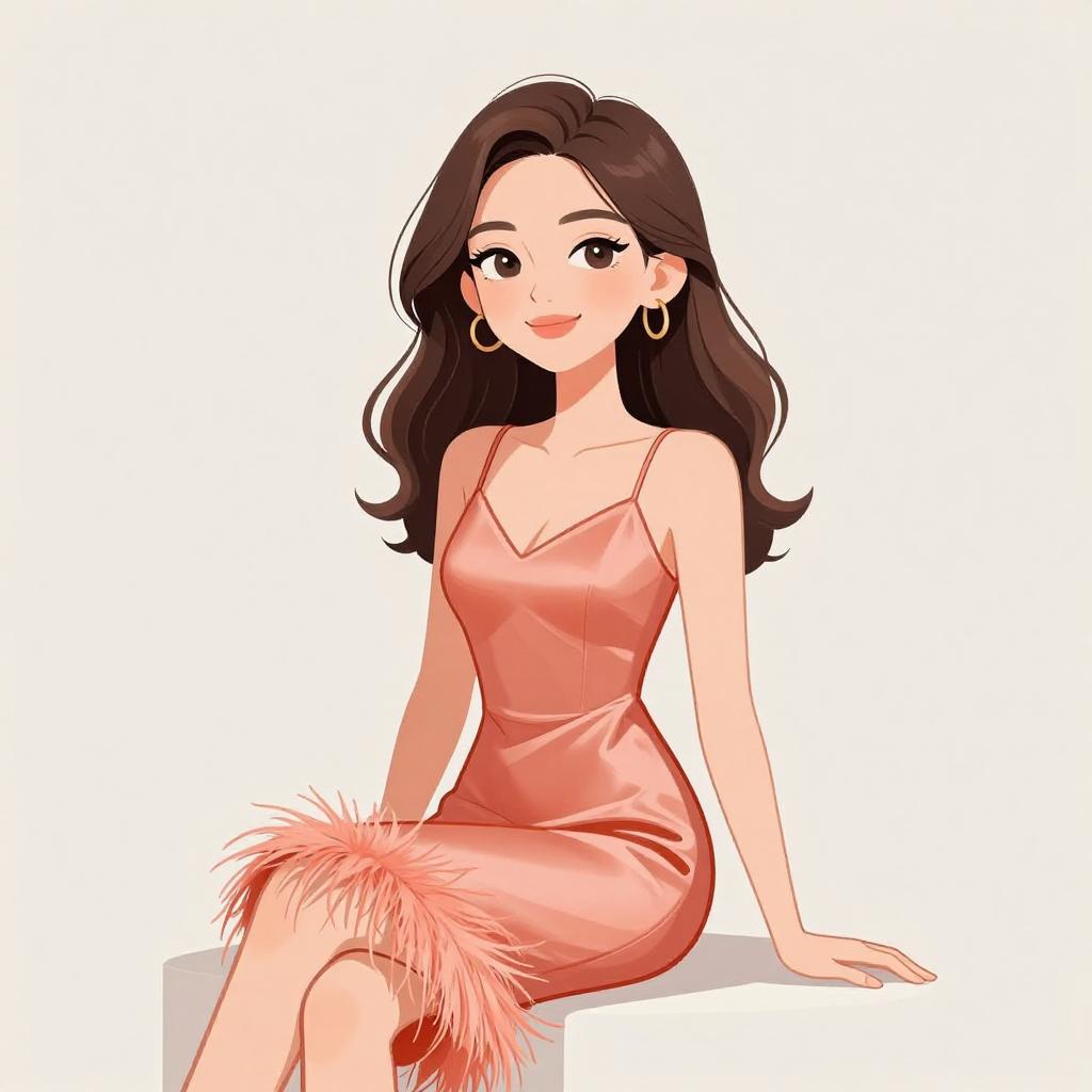 Woman with pretty face and pretty hair. smiling Woman, evening wear, metallic mini dress with shimmering silver fabric, V-neckline, thin spaghetti straps, fitted bodice, flared skirt, above-knee length, concealed back zipper. --sref 1467