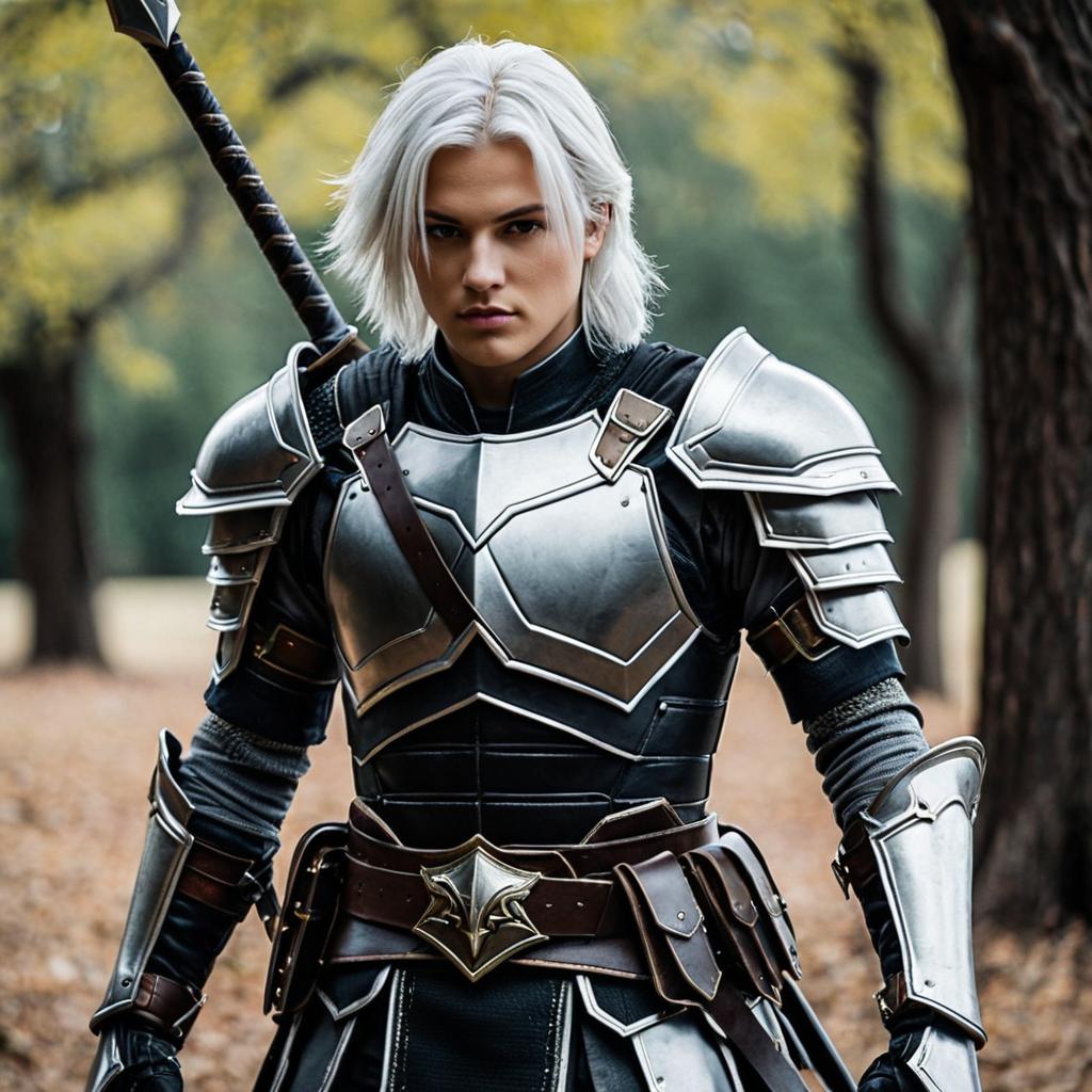 Durmstrang outfit,1boy, male focus, realistic, blonde hair, cape, looking at viewer, blurry background, blurry, outdoors, armor, solo, solo focus