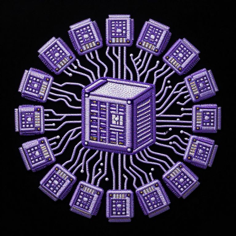 Embroidery Motif thousands of computer servers, very light purple, neural networks, machine learning, gpus - Upscaled (Light) by,
