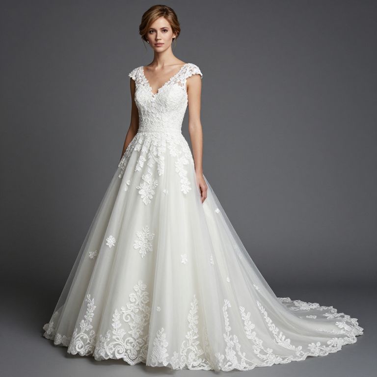 Elegant Lace Applique Tulle Wedding Dress