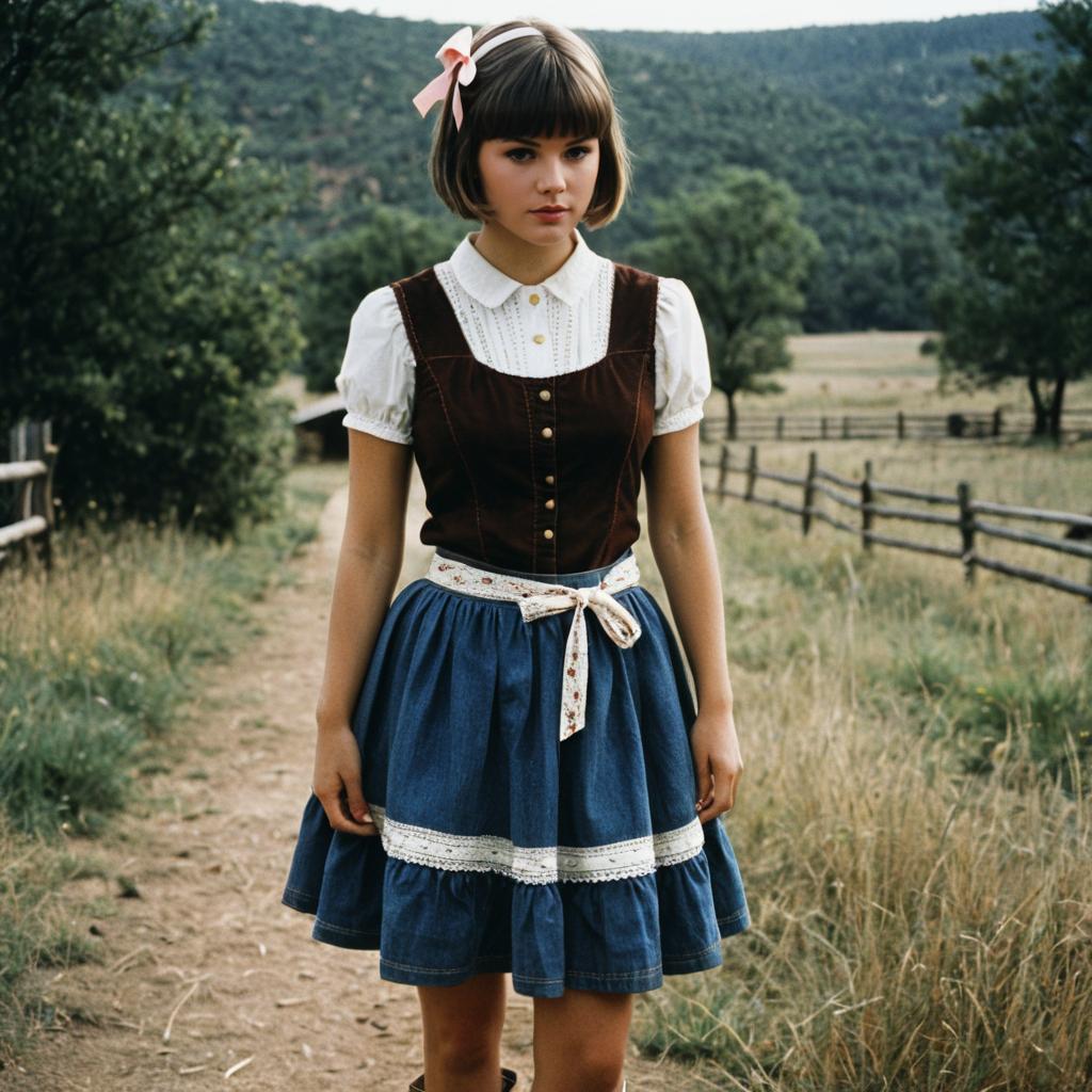 Masterpiece, best quality, highres, nn1, 1girl, hair ribbon, short hair, dress, skirt, cowboy shot, standing, outdoors