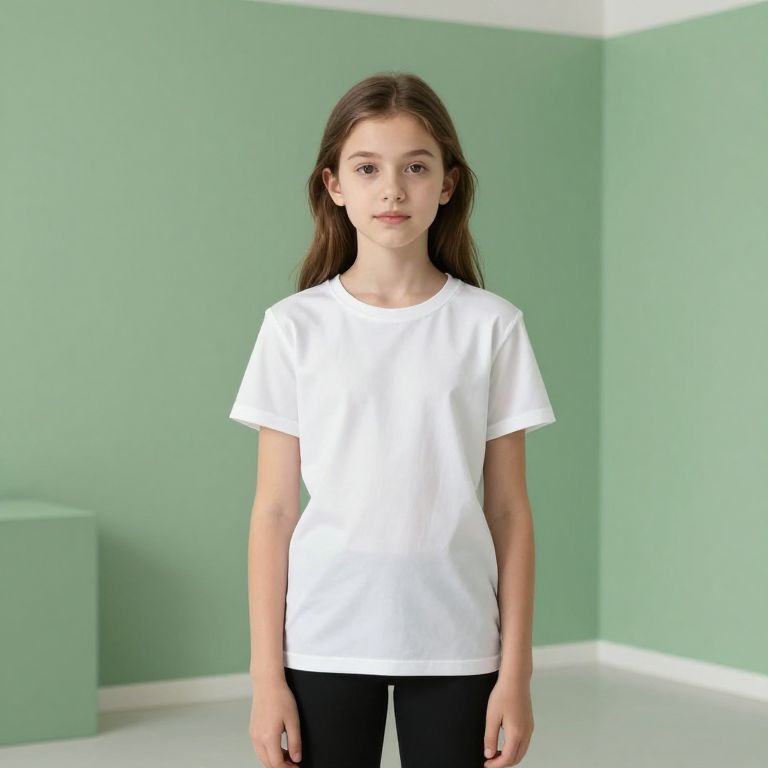 A young girl is wearing a red dress with a red hoodie and a red skirt. The hoodie has a green leaf design on it. The girl has brown hair and blue eyes.