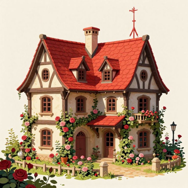 Whimsical Lavender-Roofed Fairy Cottage
