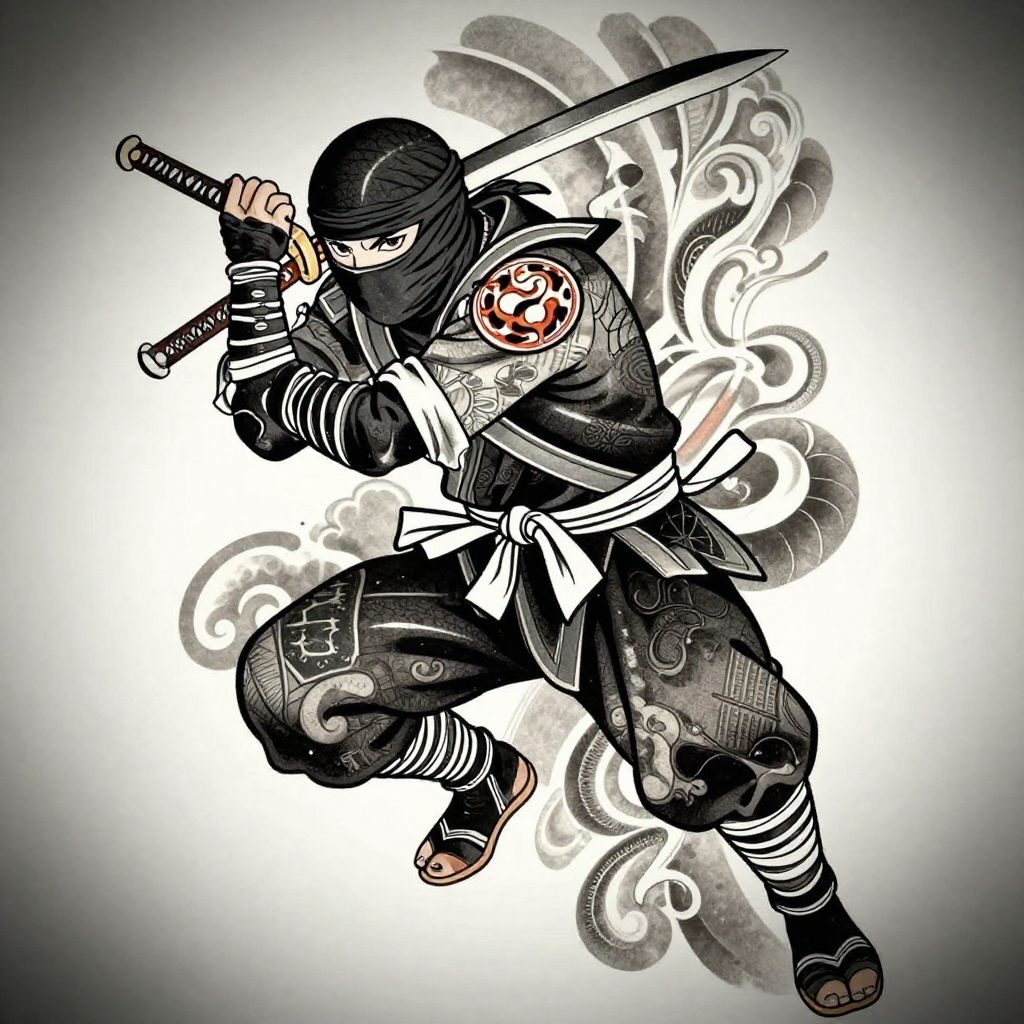 Dynamic Ninja Tattoo Design