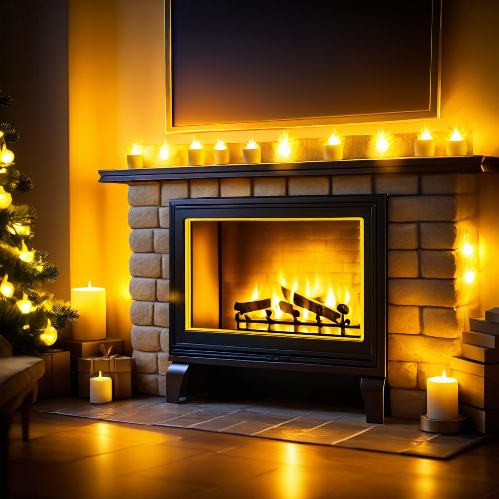 Cozy Fireplace with Yellow Lights