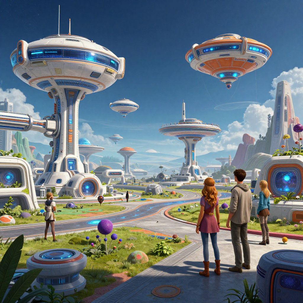 Hfy scene depicting a futuristic human colony on a distant planet, showcasing advanced technology, diverse human characters, and alien landscapes with vibrant colors and a hopeful atmosphere, detailed and immersive sci-fi environment