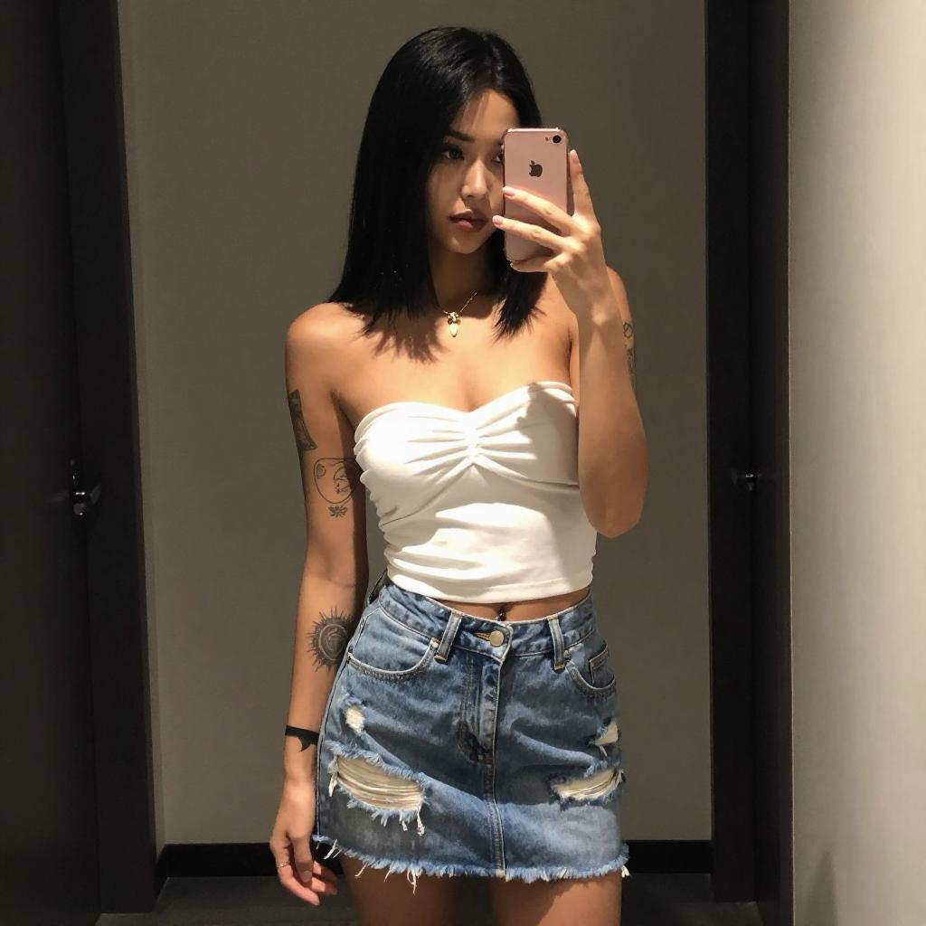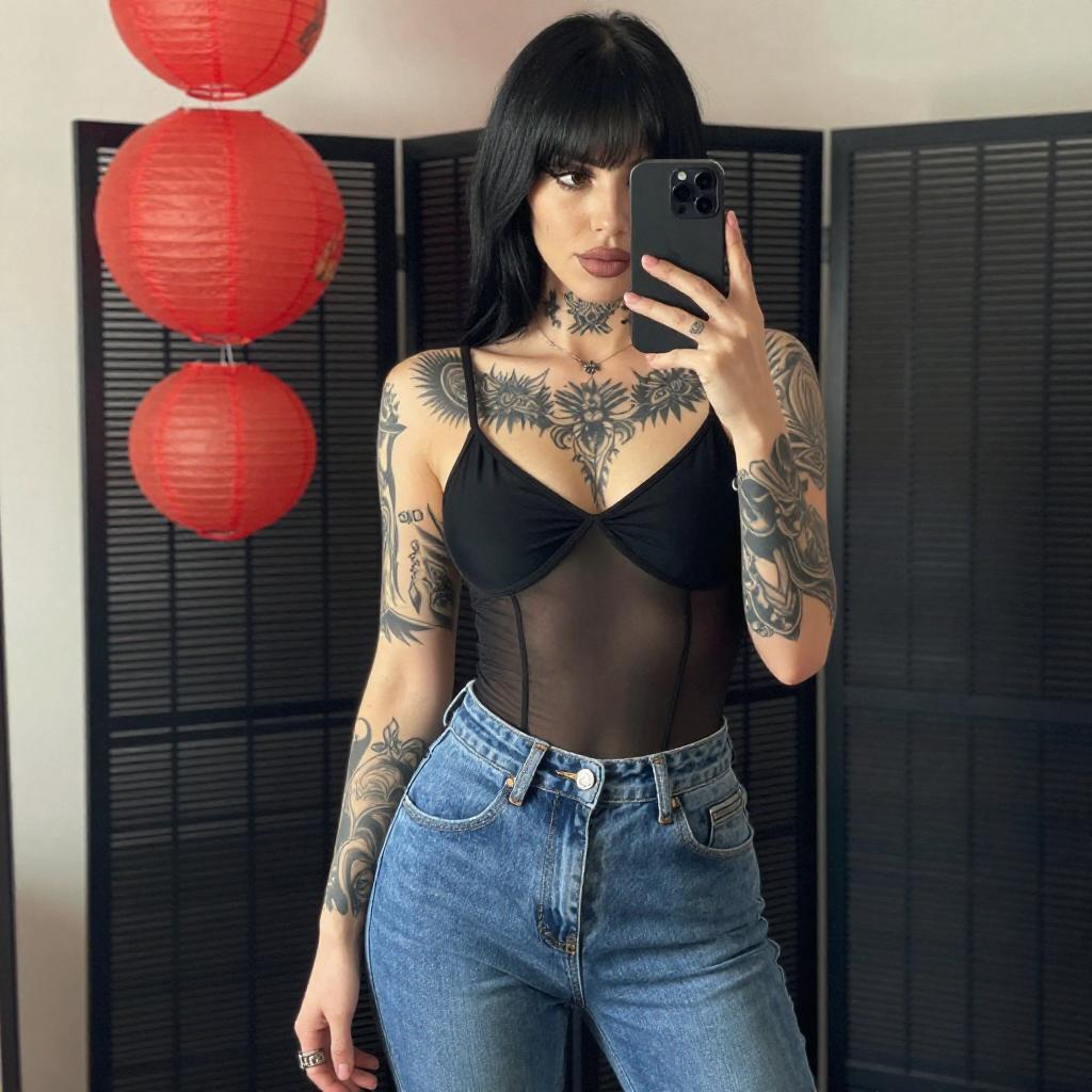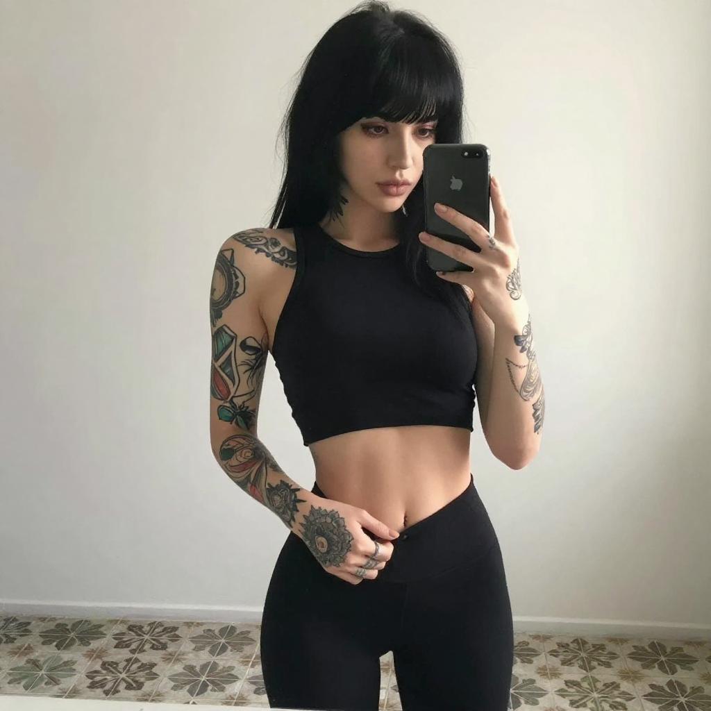 Tattooed Woman Mirror Selfie