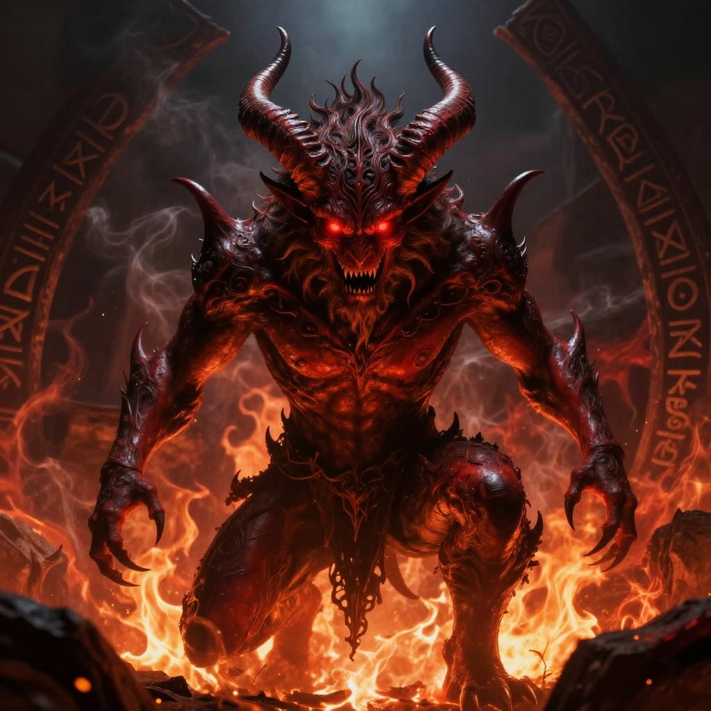 Fiery Red Demon in Gothic Flames