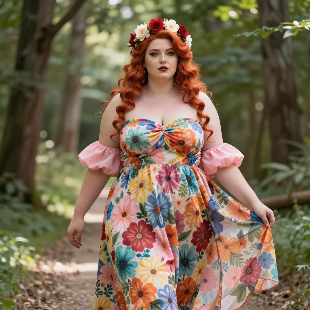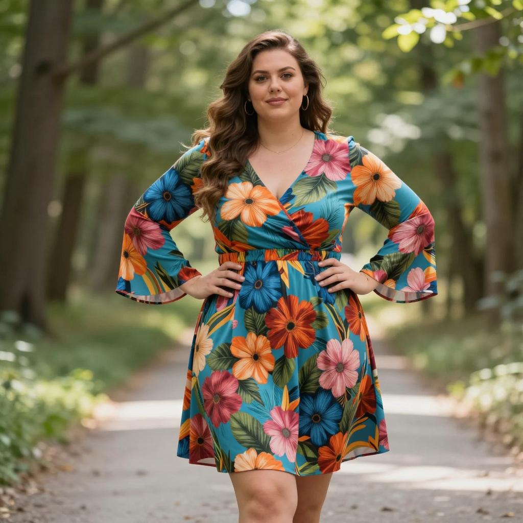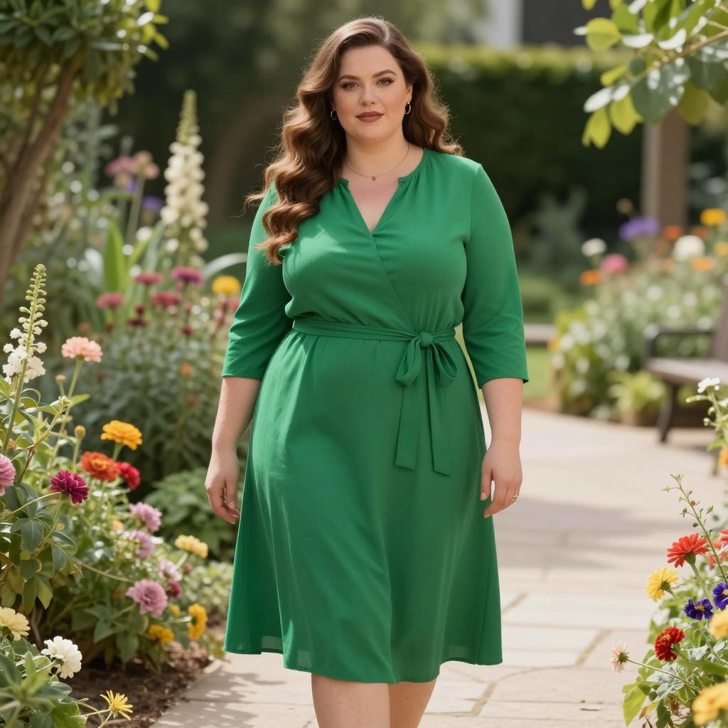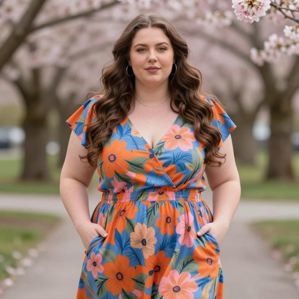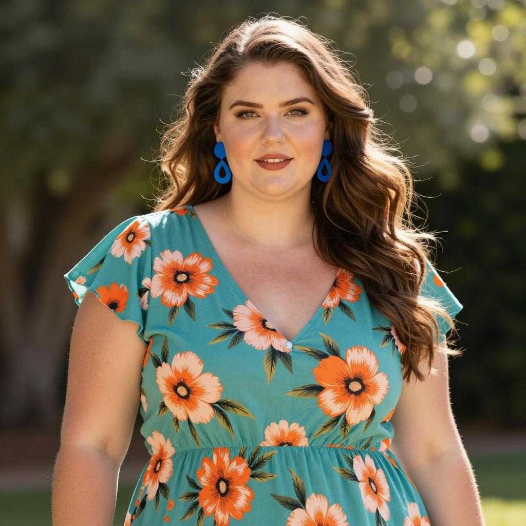 Plus Size Woman in Blue Polka Dot Retro Dress