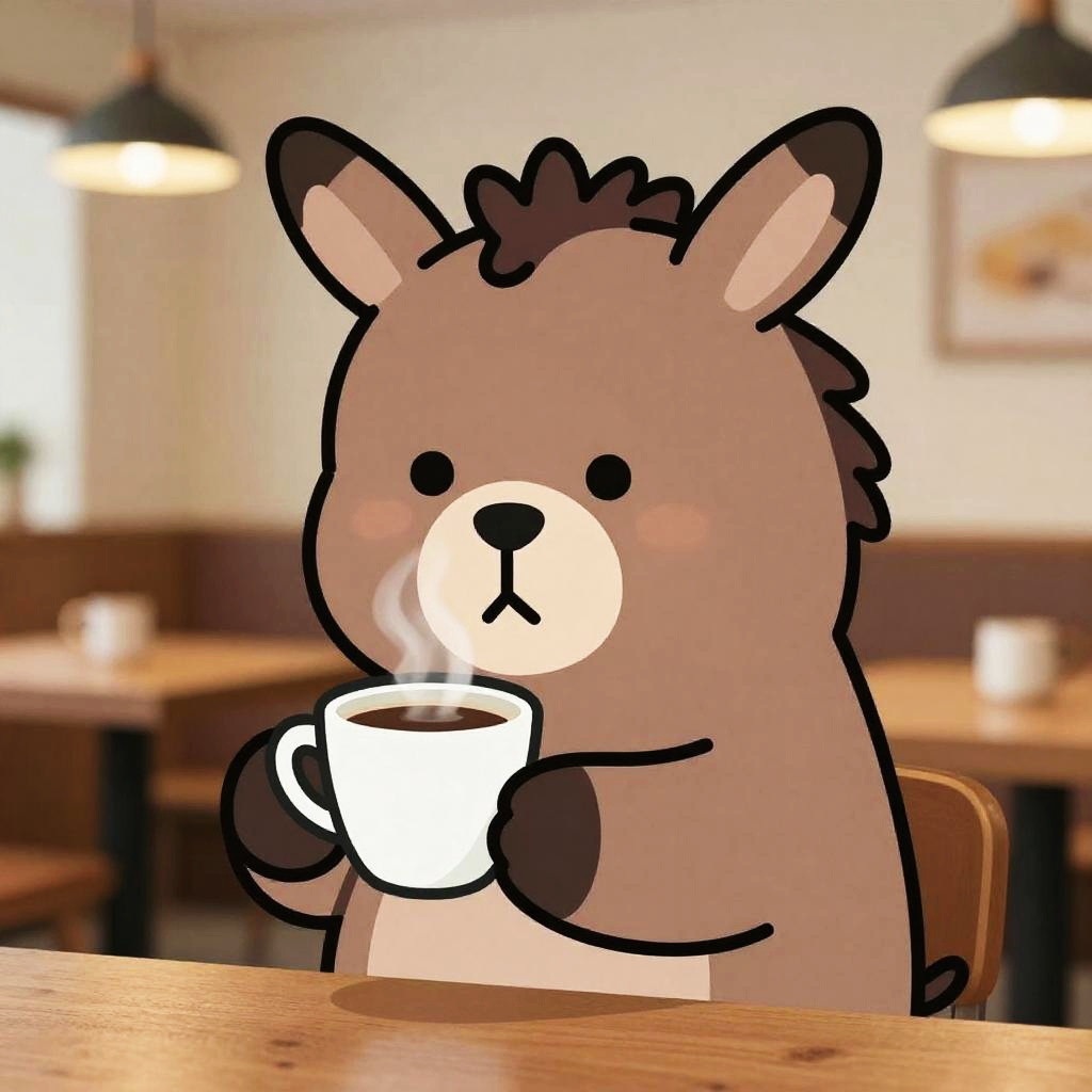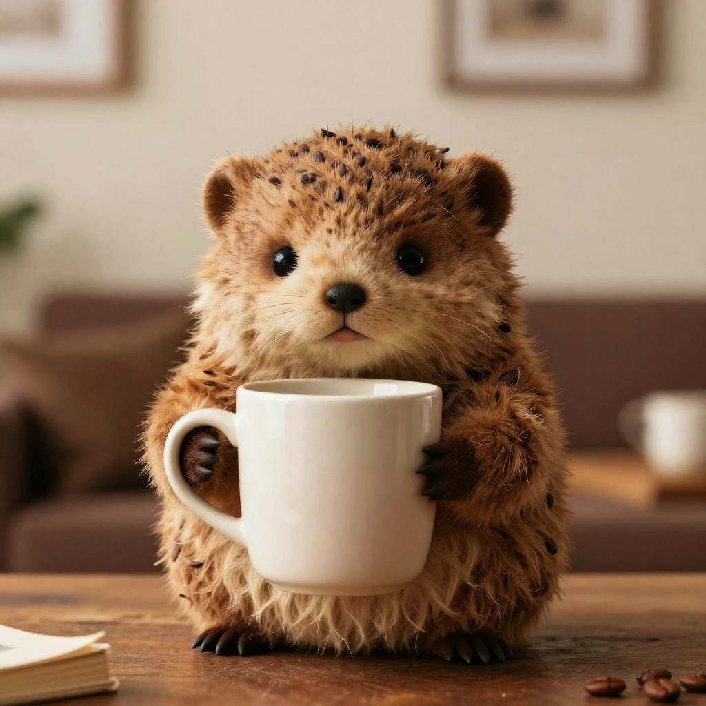 Doodle Coffee Bear - A shy mole holding a ceramic mug for a warm and cozy atmosphere.