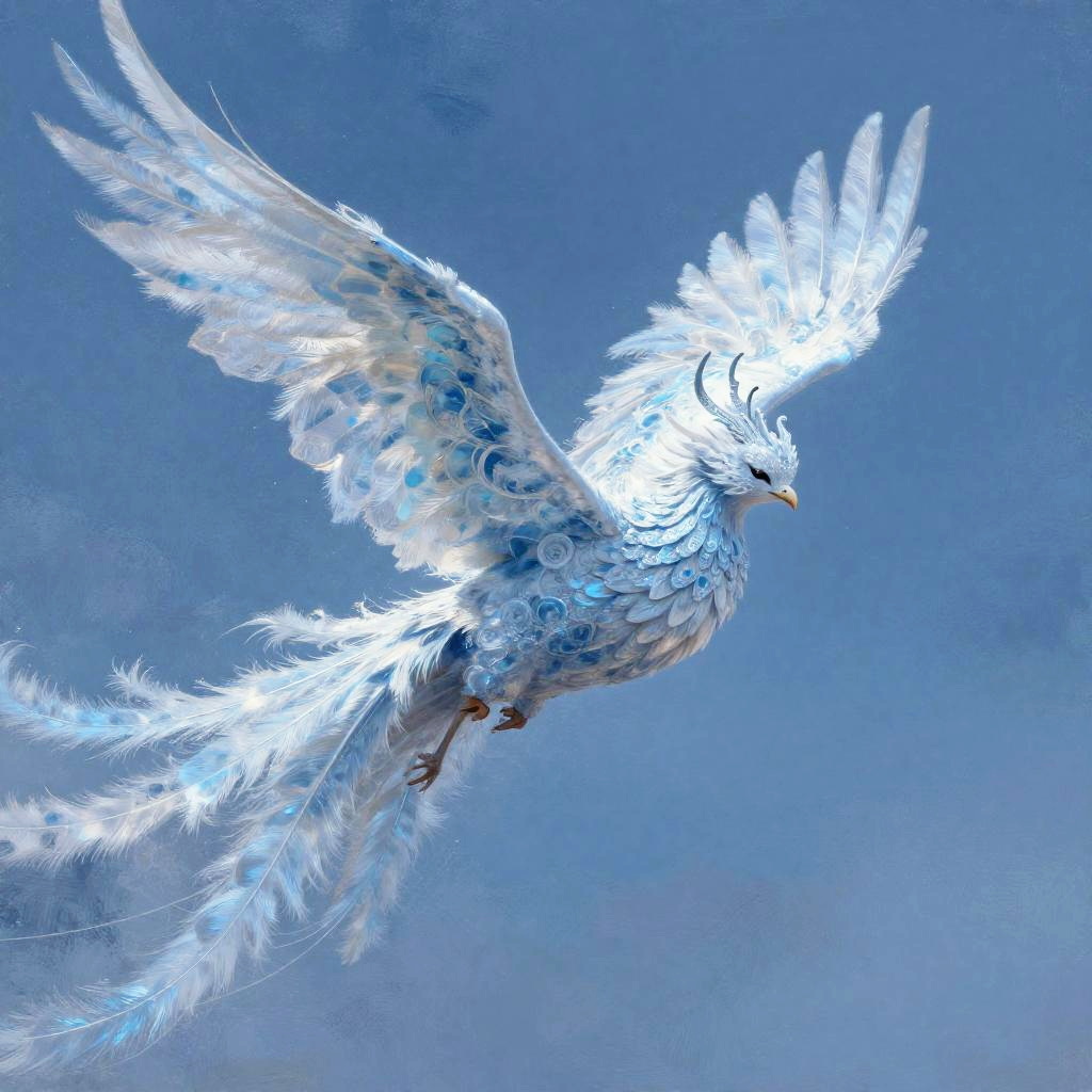 Mythical Ice Phoenix in Frozen Sky