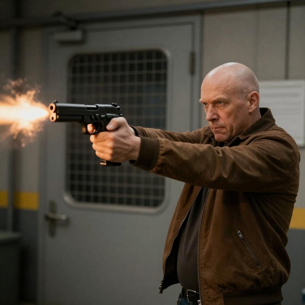 Dramatic Night Rescue Scene with Gun