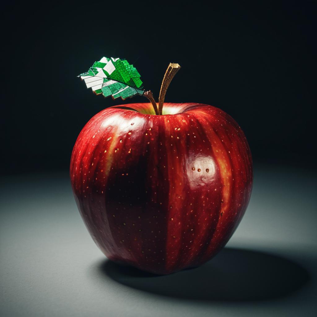 Real - life professional photo of a minecraft enchanted apple, highly detailed, extremely high quality, hd, 4 k, 8 k, professional photographer, 40 mp, lifelike, top - rated, award winning, realistic, detailed lighting, detailed shadows, sharp, no blur, edited, corrected, trending