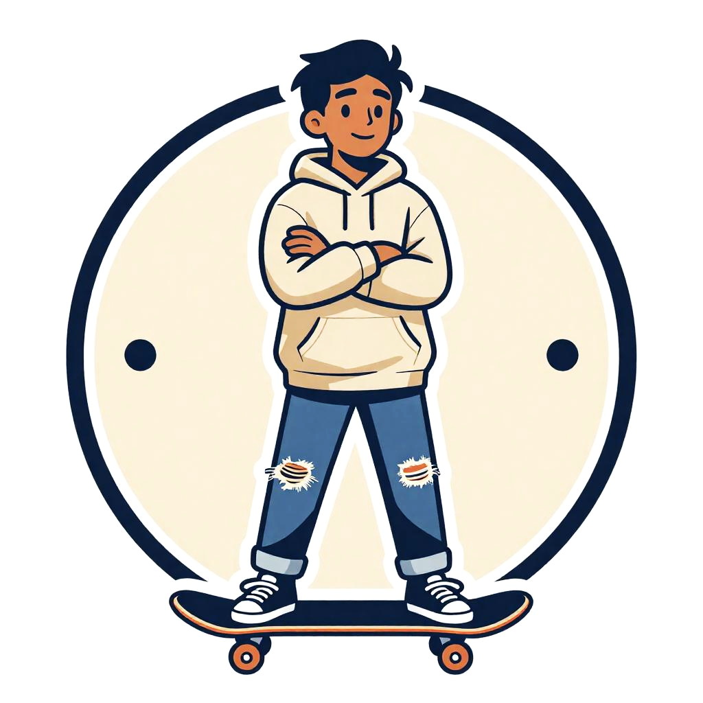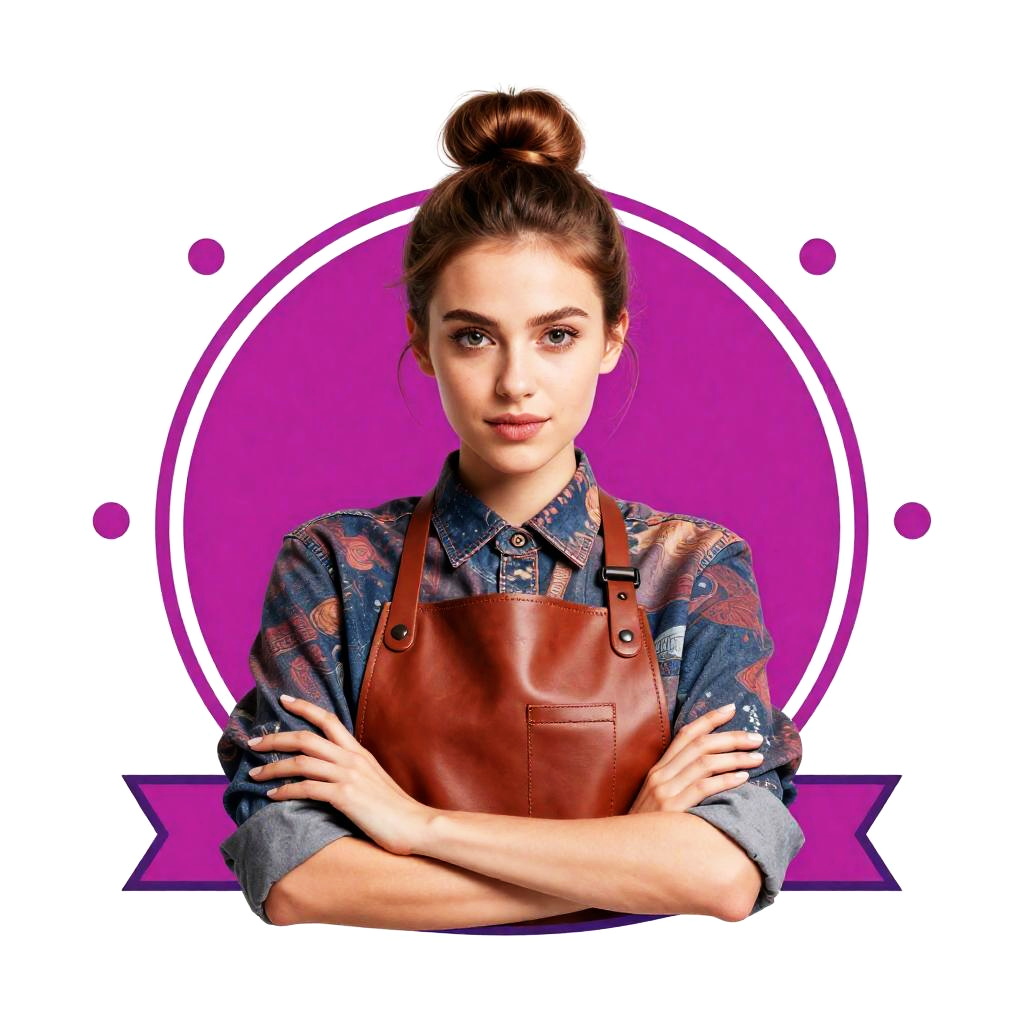 Create a surreal logo featuring an intrepid female pilot facing forward with arms crossed. Her charming face is prominently displayed, dressed in a trendy leather aviator jacket and goggles.