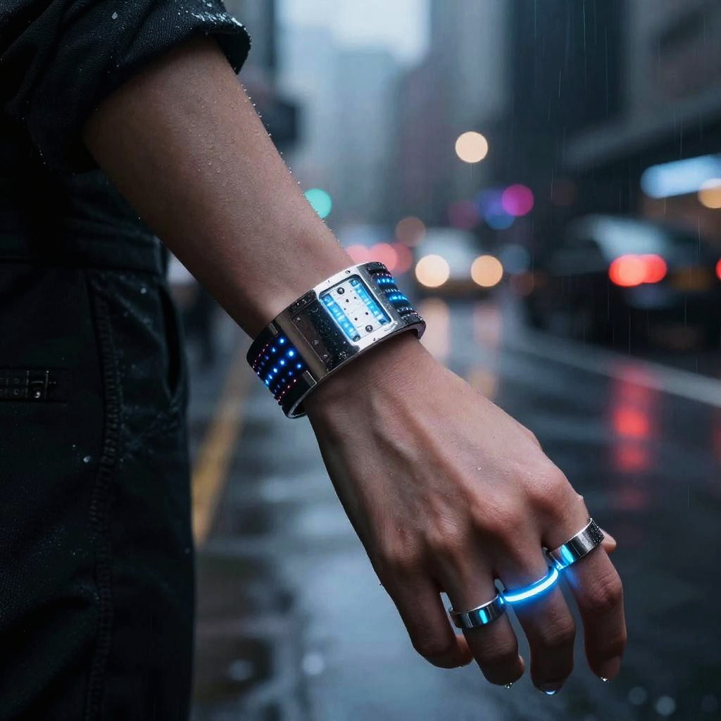 Futuristic Compass on High-Tech Wrist Device