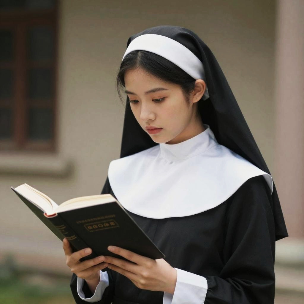 Realistic Nun Reading a Sacred Book