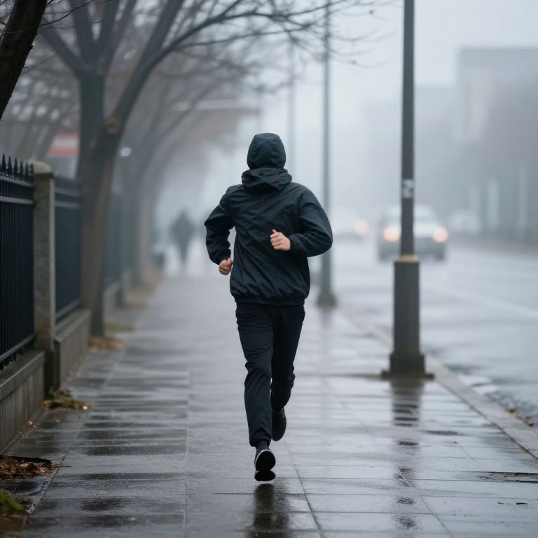 Runner on Foggy Urban Sidewalk
