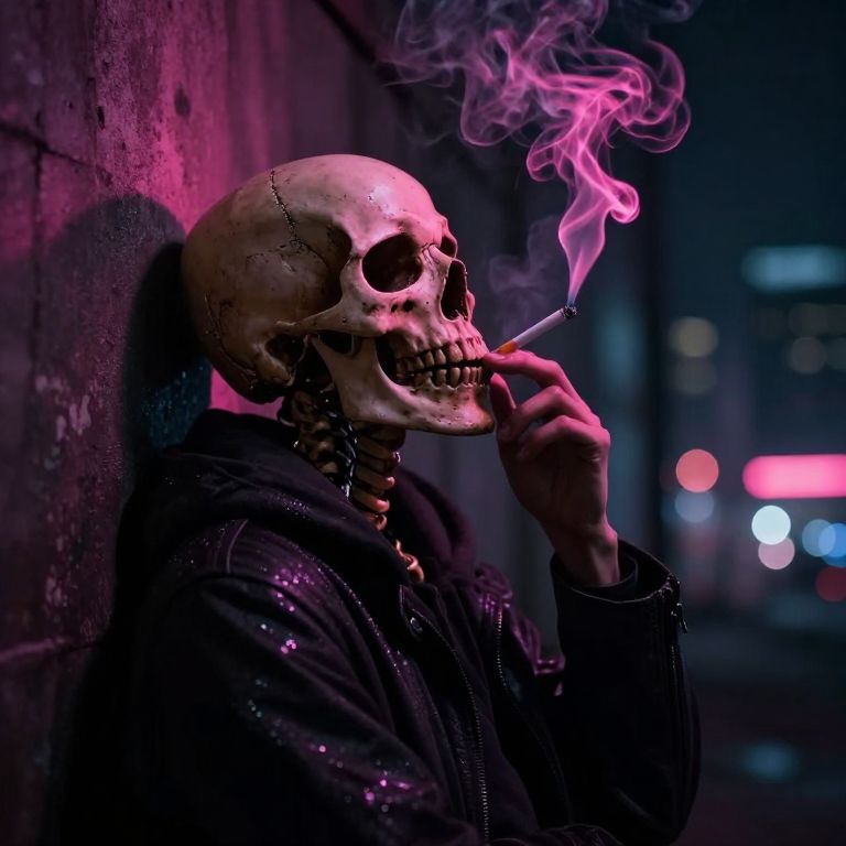 R3tun4L style, skelenecro, flat color two-toned in translucent Neon Pink, Blue, and Green hues, cinematic lighting, hyperrealistic extreme close-up macro photography, 64-megapixel DSLR, A vibrant, action-packed anime scene in a sketch-like style with thick, bold lines, The focus is a close-up of a charming skeleton necromancer’s skull, engraved with glowing neon symbols that blend medieval magic and futuristic sci-fi, His hollow eye sockets blaze with neon-turqoise-green flames, while his cracked bone structure reflects the neon hues of the environment, High collar Military parka, thumb-up pose, Small, illuminated circular lights float around his skull, giving him an ethereal, mysterious aura, The glowing runes on his bones pulse with energy, radiating a dark power, Atmospheric haze surrounds the scene, heightening the contrast between the deep blacks of the background and the vibrant neon lights, The intense aura swirling around him feels ready to explode with necromantic energy, creating a striking visual of raw emotion and supernatural power in this eerie, sci-fi fantasy setting